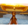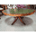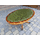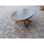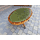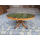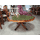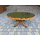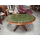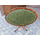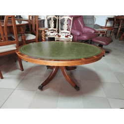 Стіл журнальний, на чотирьох ніжках та коліщатах, столешня відкидна, овальної форми. Стіл виготовлений з натурального дерева, темно-червонявий дуб, масив, столешня обтягнута тисненою шкірою яскраво-зеленого кольору. Ніжки столу декоровані латунним литтям у вигляді лап. Стіл в хорошому стані, компактний та зручний в користуванні, привезений з Бельгії.