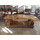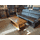 Великий деревяний журнальний стіл. Стіл на чотирьох точених ніжках, виготовлений з натурального дерева, темно- золотистий дуб, масив. Стіл має велику відкриту полицю, стільниця прямокутної форми з заокругленими кутиками. Стіл великий, повністю масивний, без виимих дефектів чи пошкоджень, в дуже хорошому стані, привезений з Бельгії.