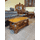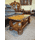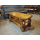 Великий деревяний журнальний стіл. Стіл на чотирьох точених ніжках, виготовлений з натурального дерева, темно- золотистий дуб, масив. Стіл має велику відкриту полицю та одну шухляду, стільниця прямокутної форми з заокругленими кутиками. Стіл великий, повністю масивний, без виимих дефектів чи пошкоджень, в дуже хорошому стані, привезений з Бельгії.