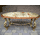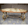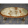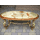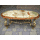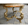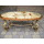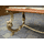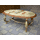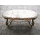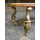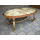 Стіл журнальний в стилі Луї, на чотирьох литих ніжках, столешня овальної форми. Каркас столу виготовлений з литого металу- латунь та декорований елементами латунного лиття, столешня виготовлена з натурального дерева, золотистий дуб, масив та виложена натуральним каменем-онікс світло-бежевого кольору. Стіл вишуканий та елегантний, в хорошому стані, привезений з Бельгії.