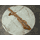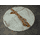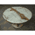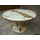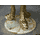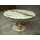 Стіл журнальний на трьох латунних ніжках, столешня круглої форми. Столешня столика виготовлена з натурального каменю- онікс світло-бежевого та коричневого кольорів, ніжки столу виготовлені з латуні та декоровані латунним литтям у вигляді рибок. Столик дуже красивий, в хорошому стані, без видимих дефектів чи пошкоджень, привезений з Бельгії.