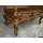 Надзвичайно красивий журнально- сервірувальний столик в стилі Барокко. Столик на коліщатках, на чотирьох різьблених вигнутих ніжках, столешня прямокутної форми. Стіл виготовлений з натурального дерева, золотистий дуб, масив, щедро декорований масивною, скрізьною різьбою ручної роботи, є додаткова поличка та висувна шухляда. Столик дуже красивий, вишуканий і елегантний, в хорошому стані, без видимих дефектів чи пошкоджень,привезений з Бельгії.