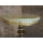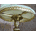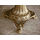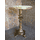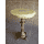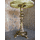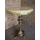 Дуже красивий столик- підставка на одній ніжці золотистого кольору. Столешня столика круглої форми, виготовлена з натурального каменю, онікс бежевого кольору, ніжка столу виготовлена з латуні, декорована литтям, основа столика на чотироьох маленьких ніжках у вигляді звіриних лап. Столик в хорошому стані, привезений з Бельгії.