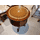 Красивий столик з дерева ручної роботи. Столик журнальний, на чотирьох ніжках та коліщатах, з відкритими поличками по колу. Столик виготовлений з масиву натурального дерева, горіх, столешня овальної форми, обтягнута тисненою шкірою світло- коричневого кольору. Ніжки столу декоровані латунним литтям у вигляді лап. Стіл в хорошому стані, компактний та зручний в користуванні, привезений з Бельгії.