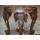 Дуже красивий і рідкісний журнальний столик в східному стилі. Столик на чотирьох ніжках у вигляді голови слона, виготовлений з масиву натурального червоного дерева, темного кольору, щедро декорований різьбою ручної роботи та натуральною слоновою кістю. Стіл великий і масивний, розбірний, усі зєднання виконані за допомогою чопів, столешня круглої форми. Столик в хорошому стані, привезений з Бельгії. Цей досить цікавий предмет з легкістю впишеться в інтерєр приміщення, виконуючи одночасно декоративну і практичну функції.