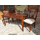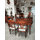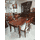 Комплект простих і водночас вишуканих меблів для залу або столової. До комплекту входить стіл столовий, не розкладний та чотири стільці. Комплект виготовлений з масиву натурального дерева, вишня. Стільці зручні та комфортні, сидіння стільців обтягнуті тканиною світло- сірого кольору. Стіл столовий, не розкладний, на чотирьох точених ніжках, столешня столу прямокутної форми. Комплект в хорошому стані, привезений з Бельгії.