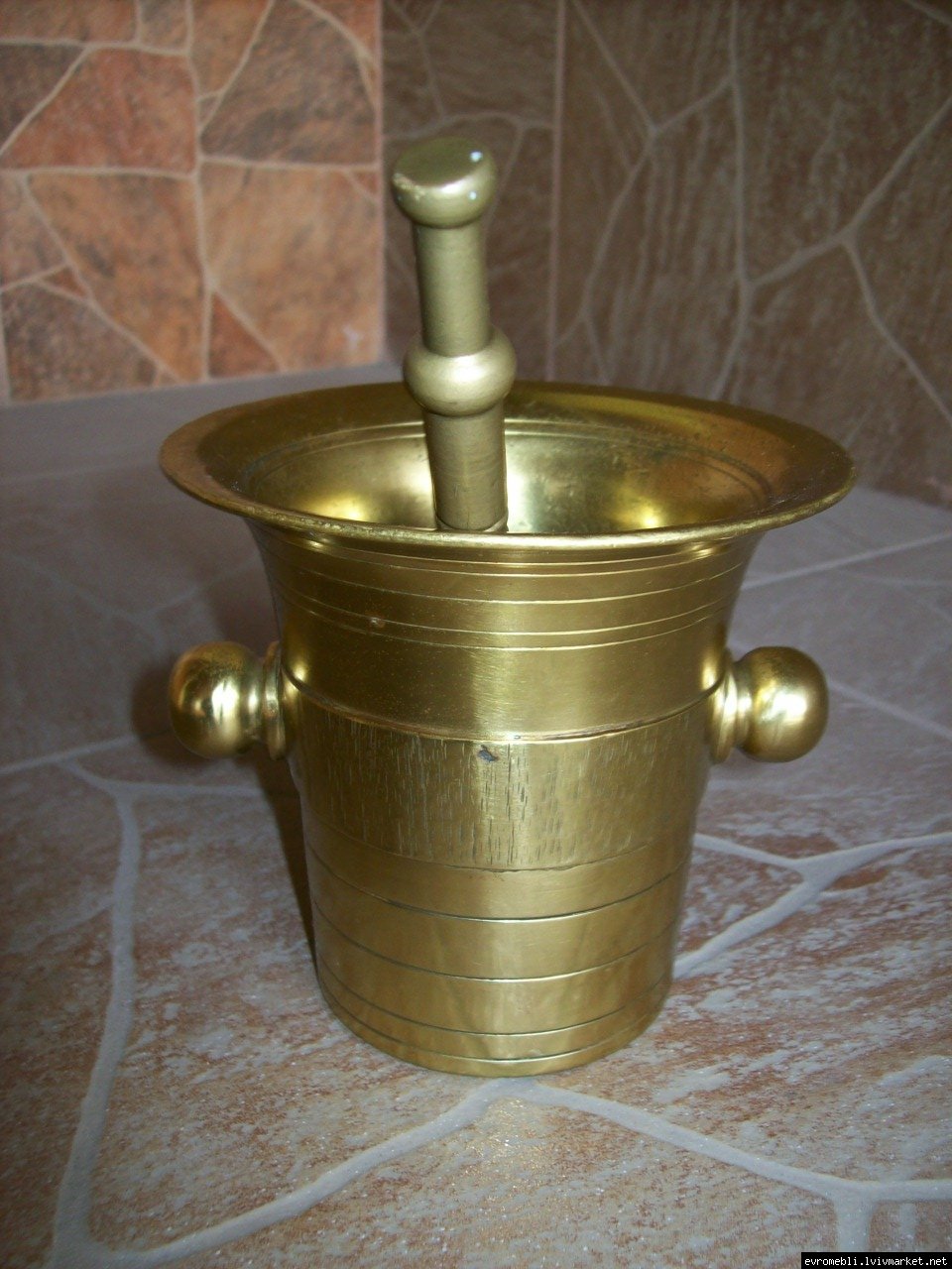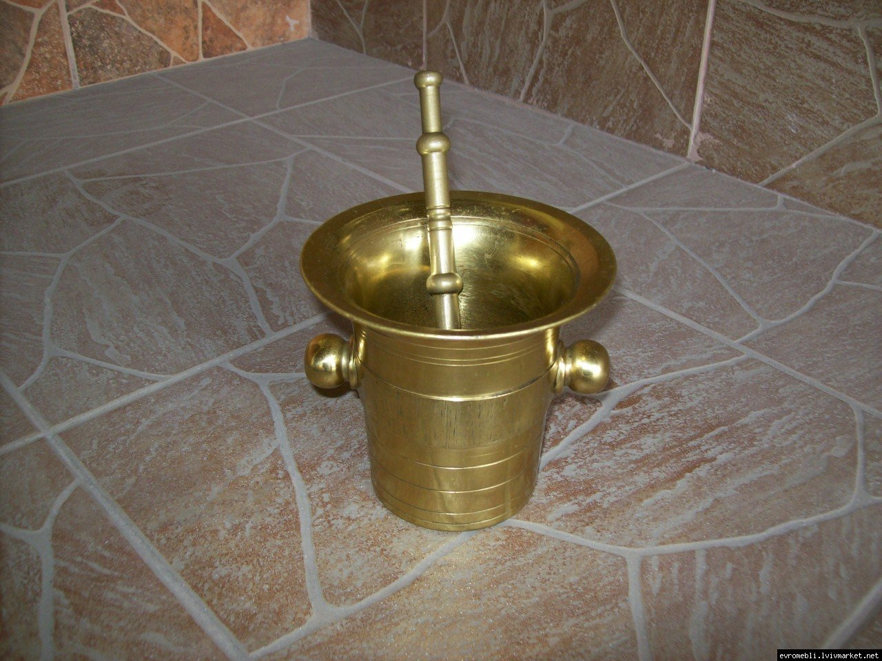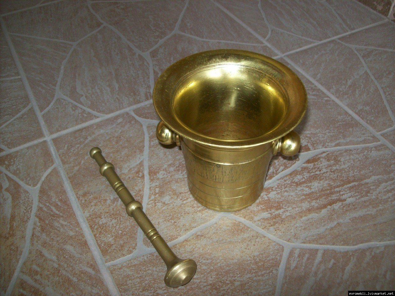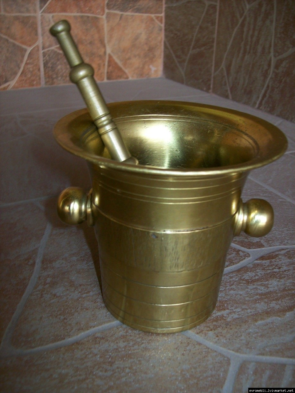 Старовинна ступка з товкачем, виготовлена з латуні. Дуже корисна в господарстві річ-ступка з товкачем, важка, красива та функціональна. Для тих, хто любить готувати блюда зі спеціями, така ступка - річ просто незамінна! Аромат свіжо змелених спецій - гарантія шикарного блюда! Ступка в хорошому стані, привезена з Бельгії.