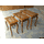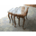 Набір деревяних табуреток в стилі Луї, в наборі три штуки. Табуретки на точених ніжках, виготовлені з натурального дерева, темно-золотистий дуб, масив, декоровані елементами різьби, столешня табуреток виготовлена зі скла та декорована плетінням з ротангу. Табуретки великі та зручні в користуванні, в хорошому стані, привезені з Бельгії.