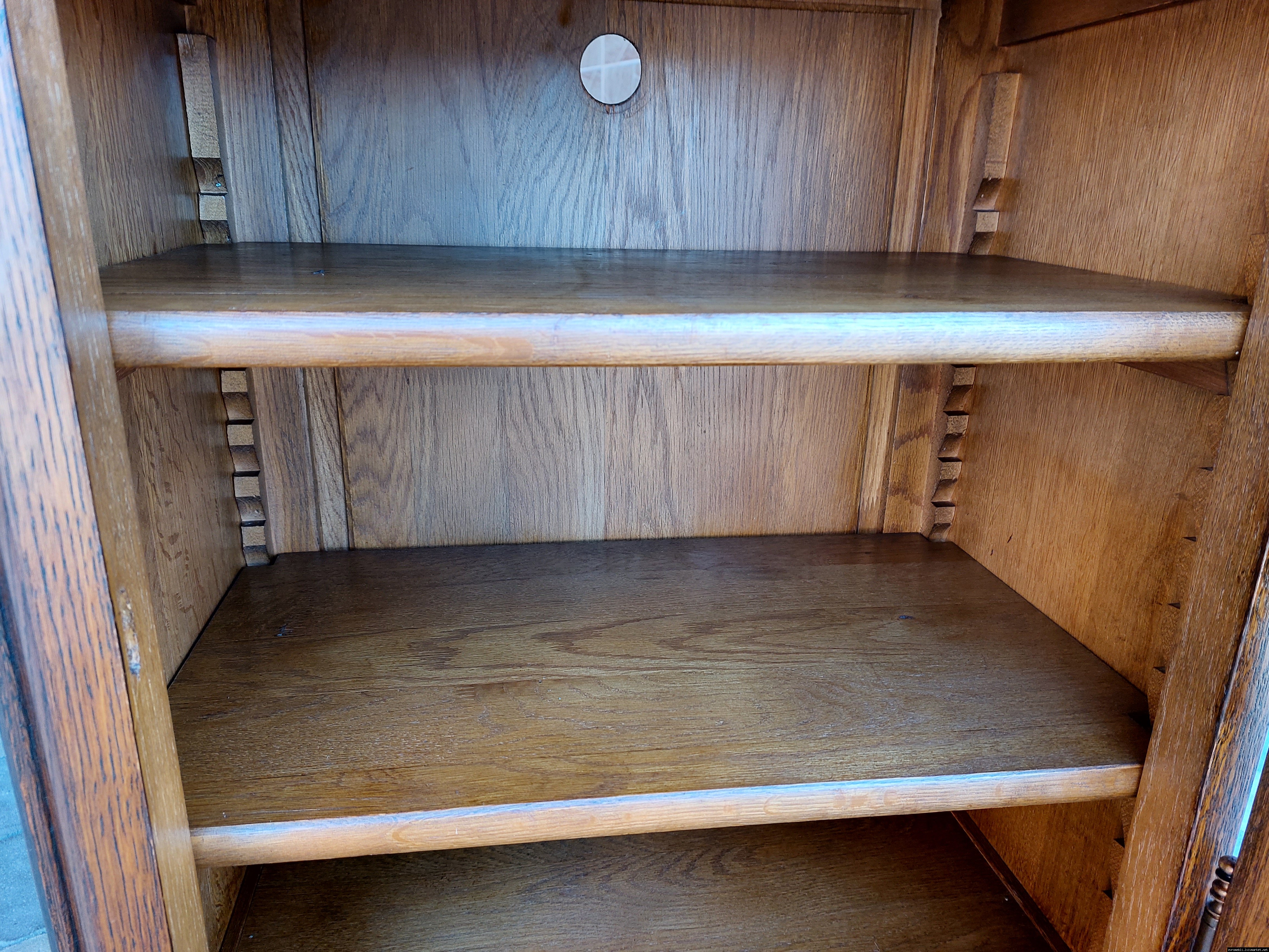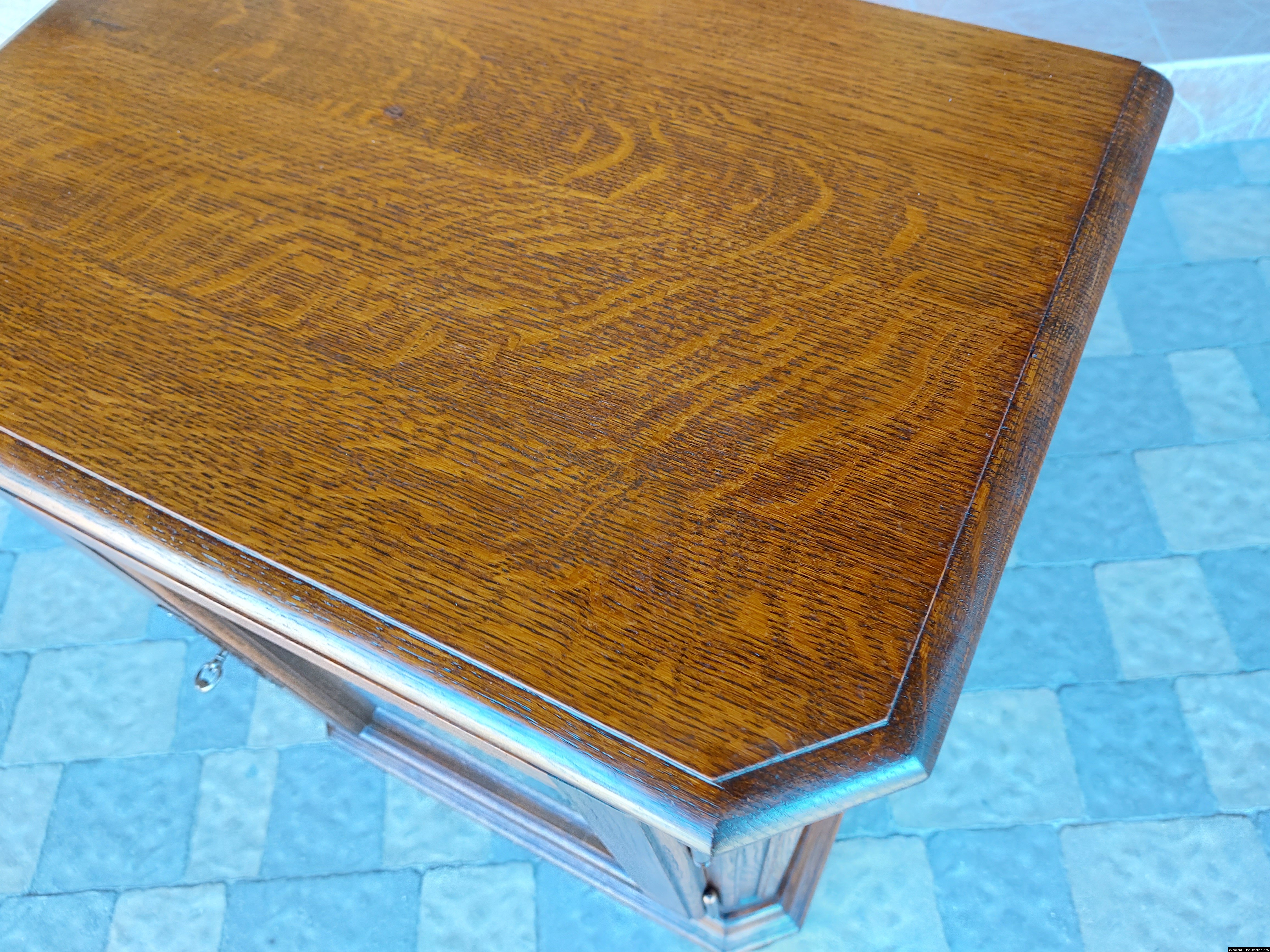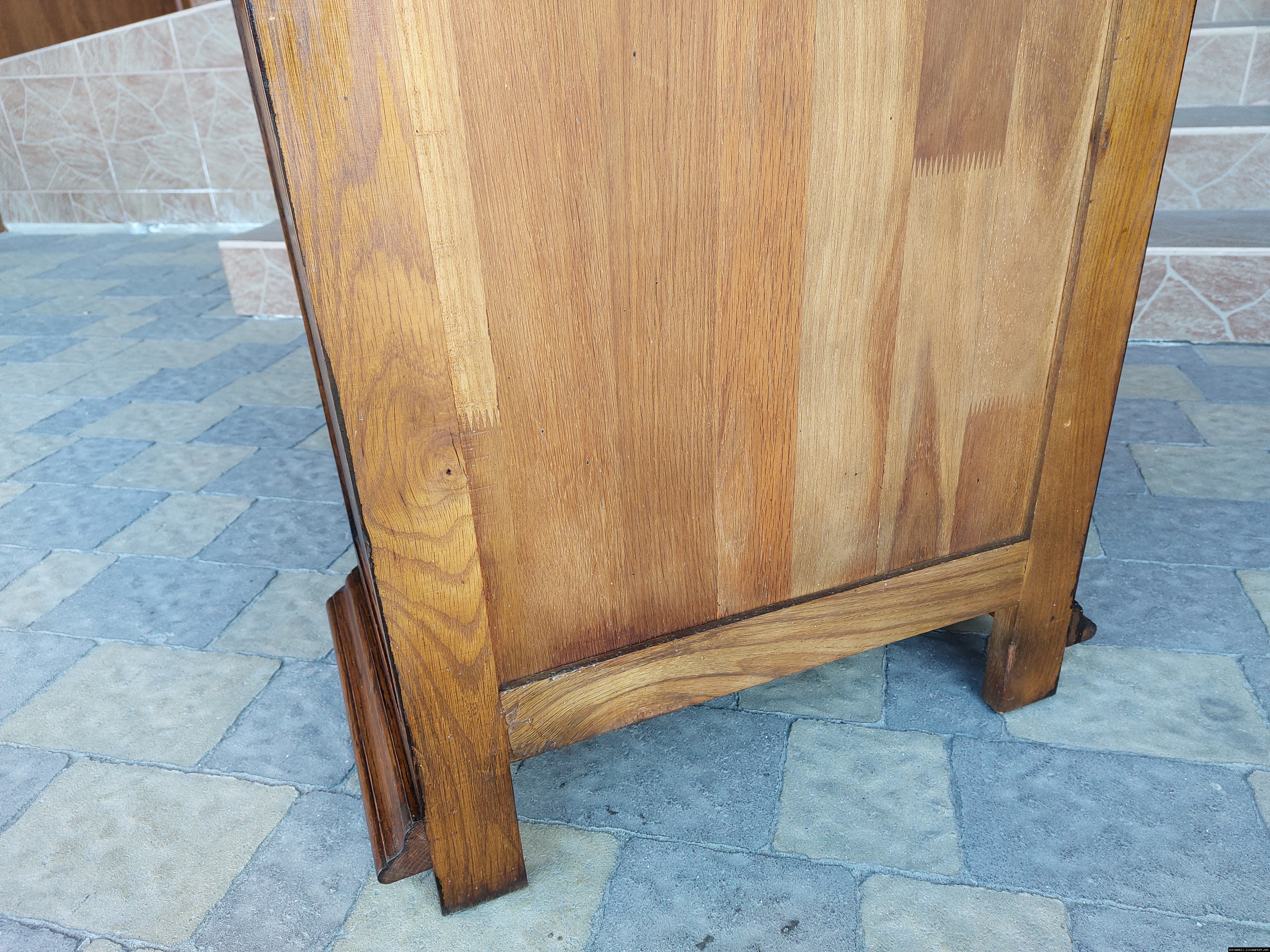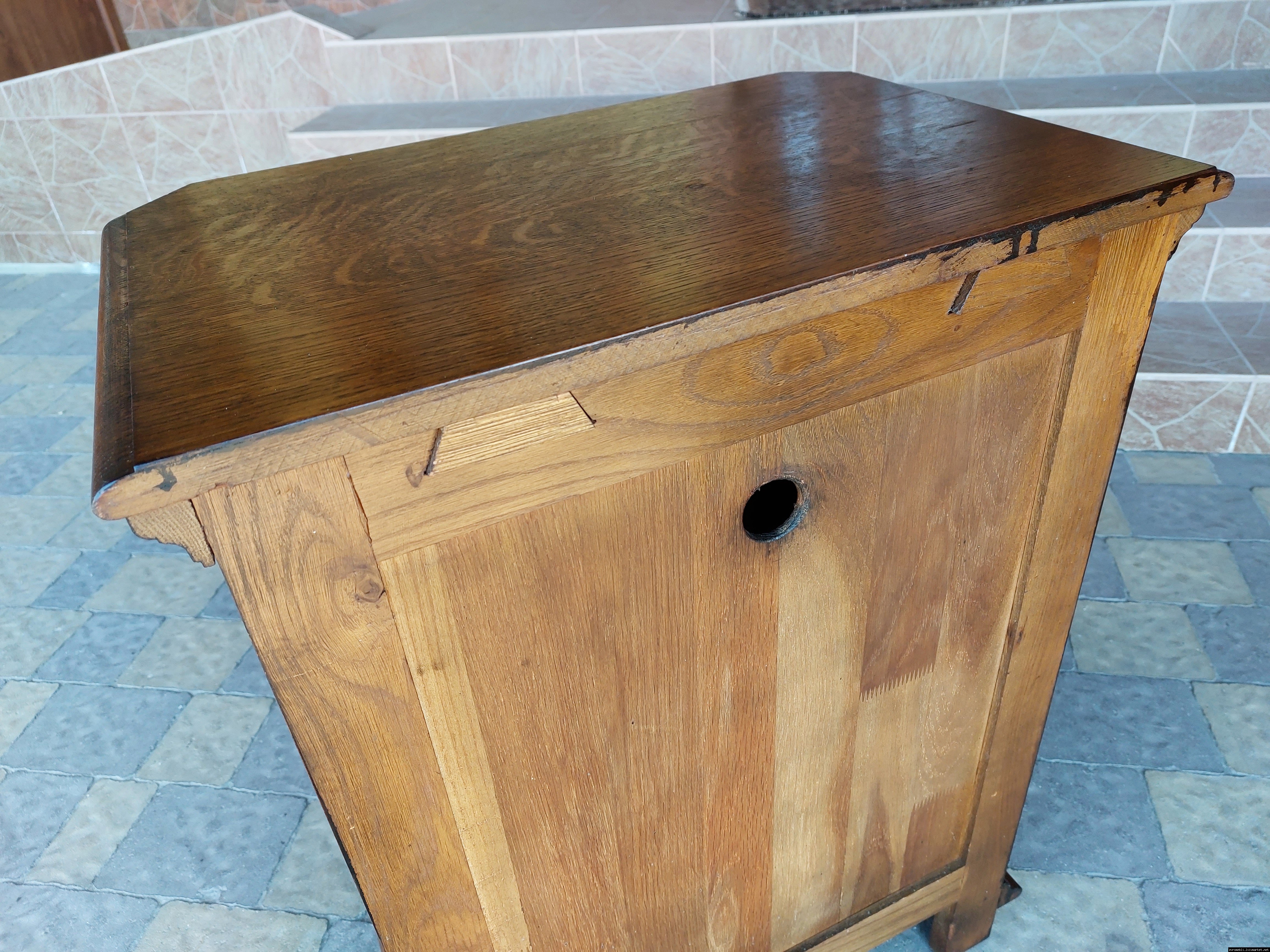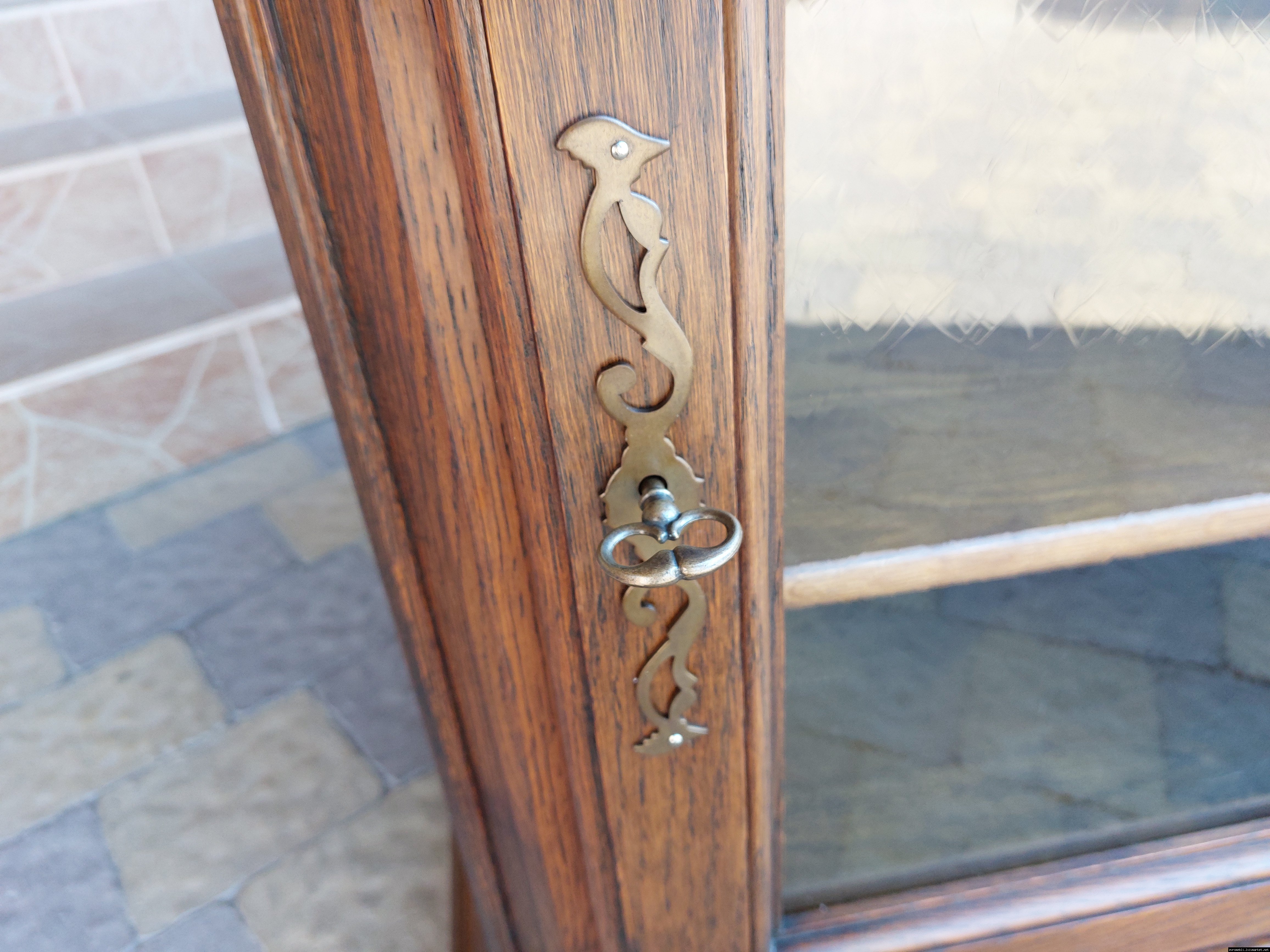 Дуже красива деревяна тумба в класичному стилі. Тумба виготовлена з натурального дерева, темний дуб, масив, має одну дверку зі склом, дверка зачиняється на ключ, всередині є деревяні полиці, висота полиць регулююється. Тумба в хорошому стані, проста та вишукана, повністю масивна, привезена з Бельгії.