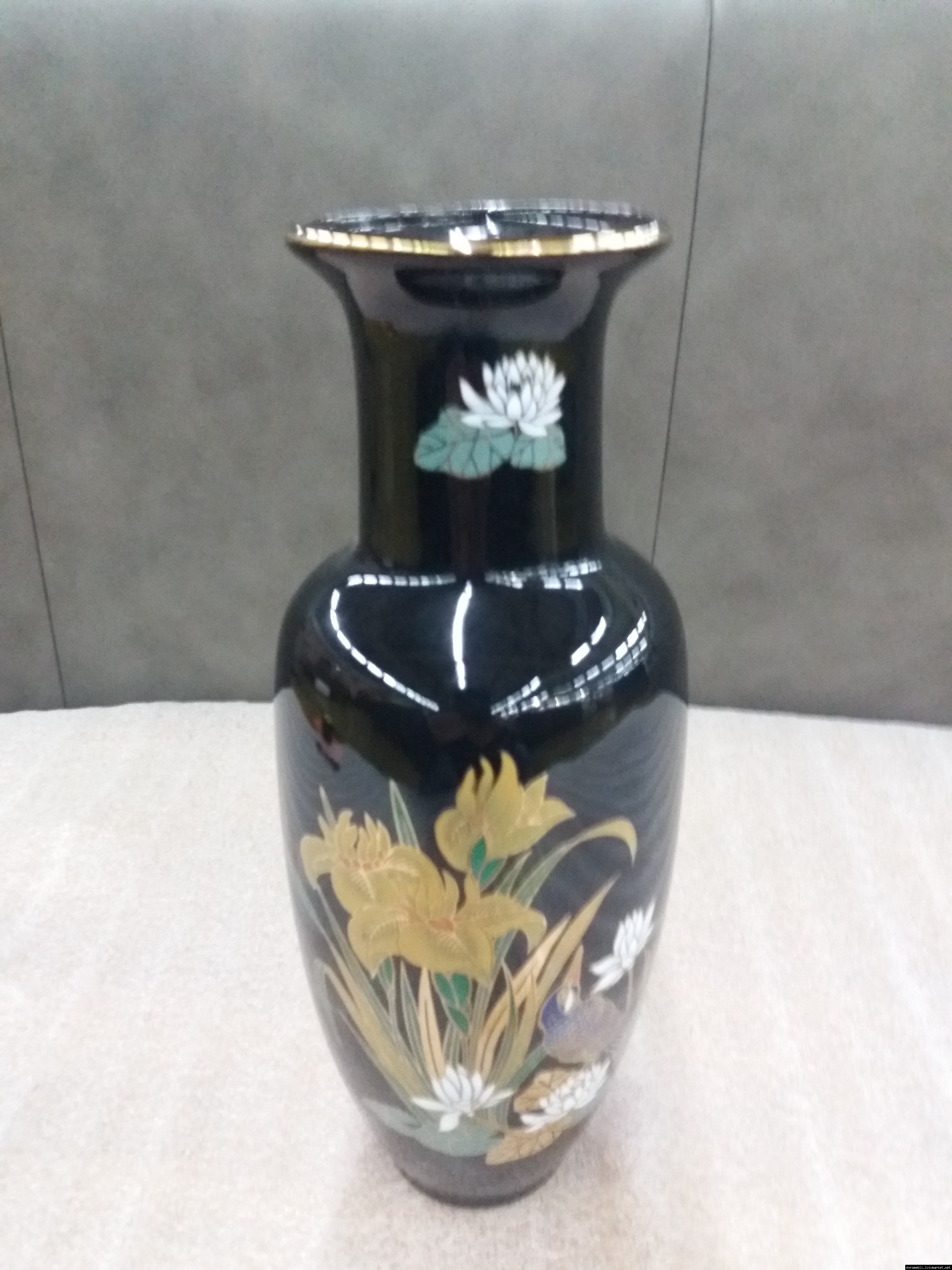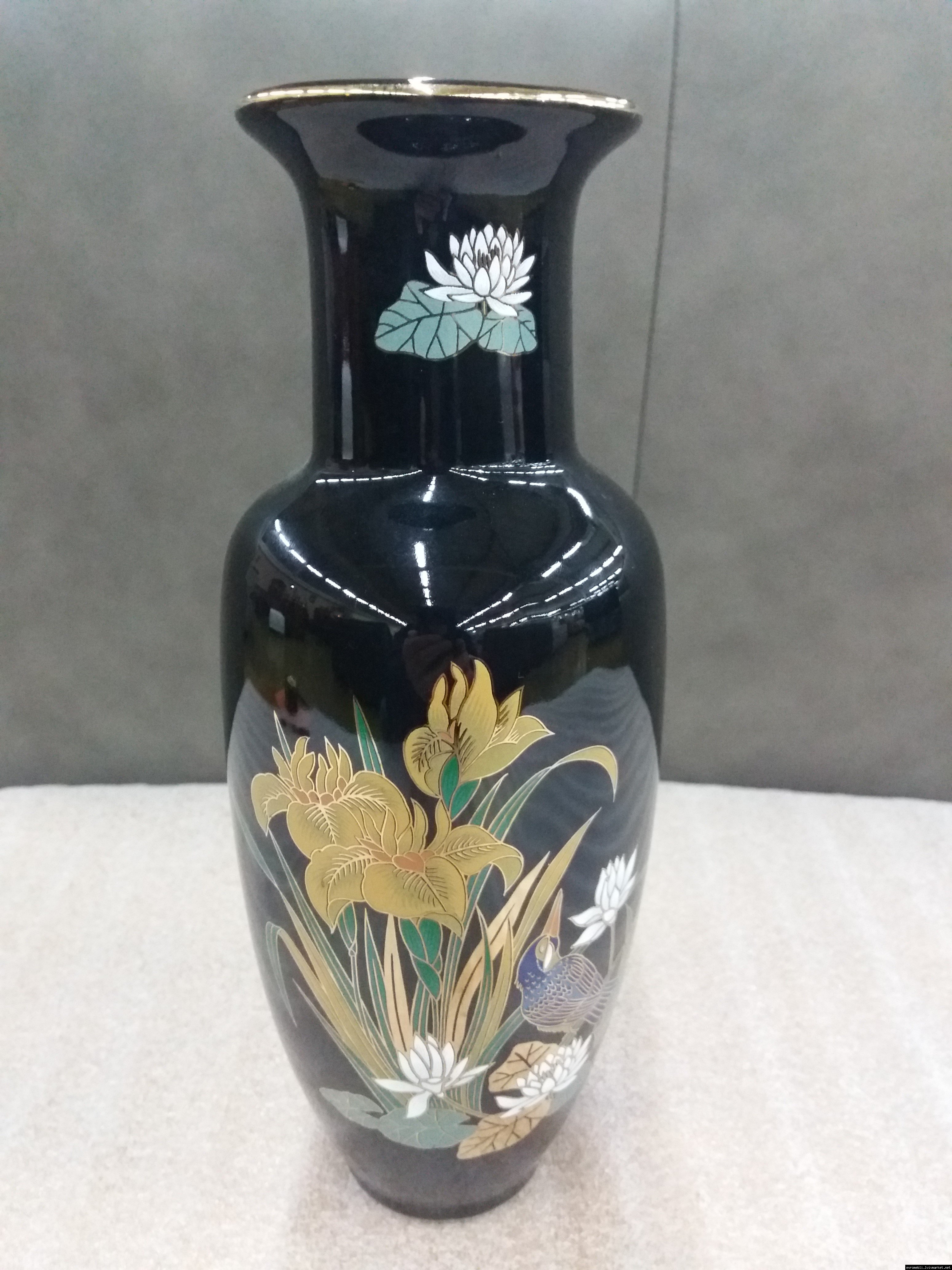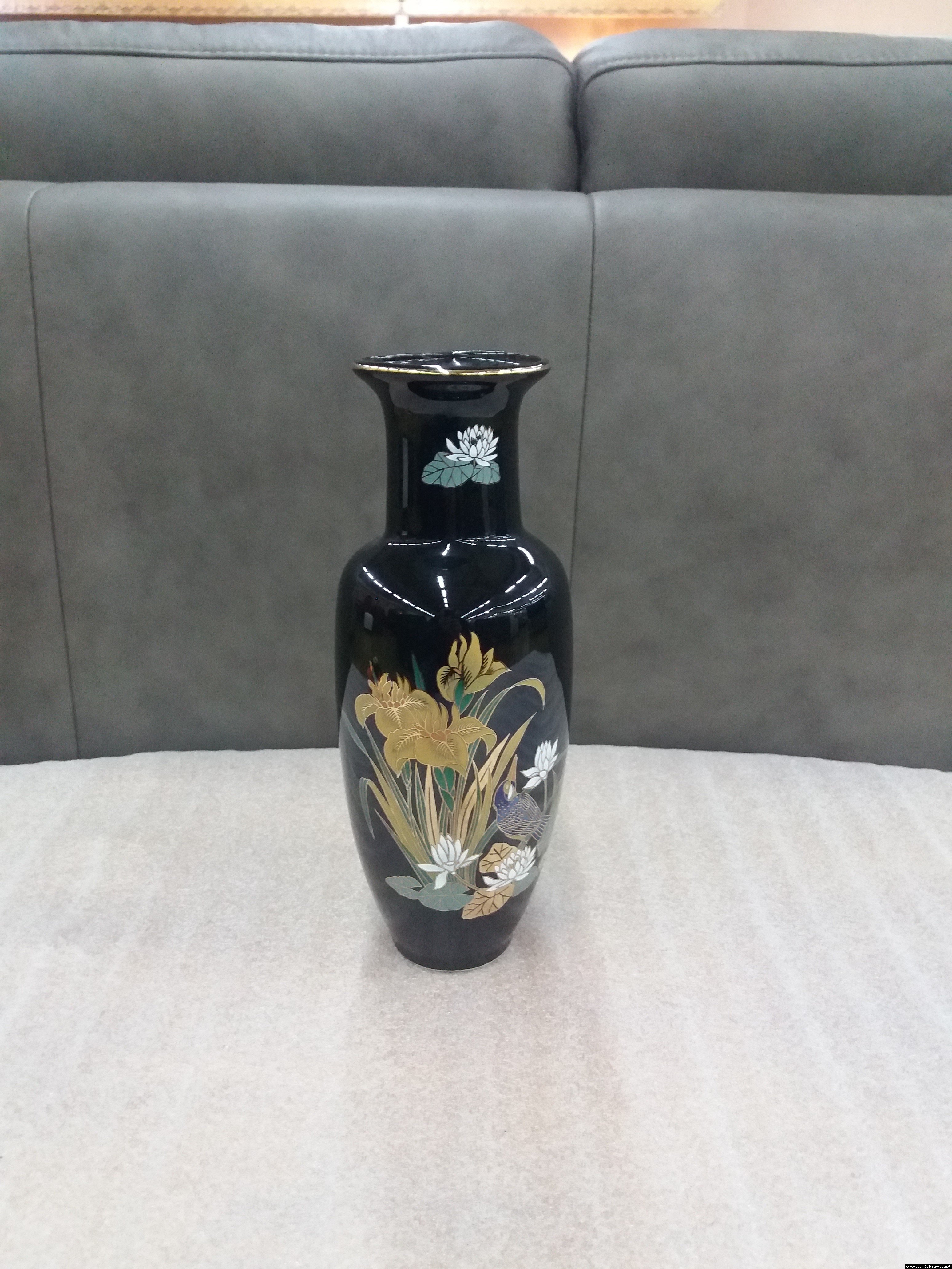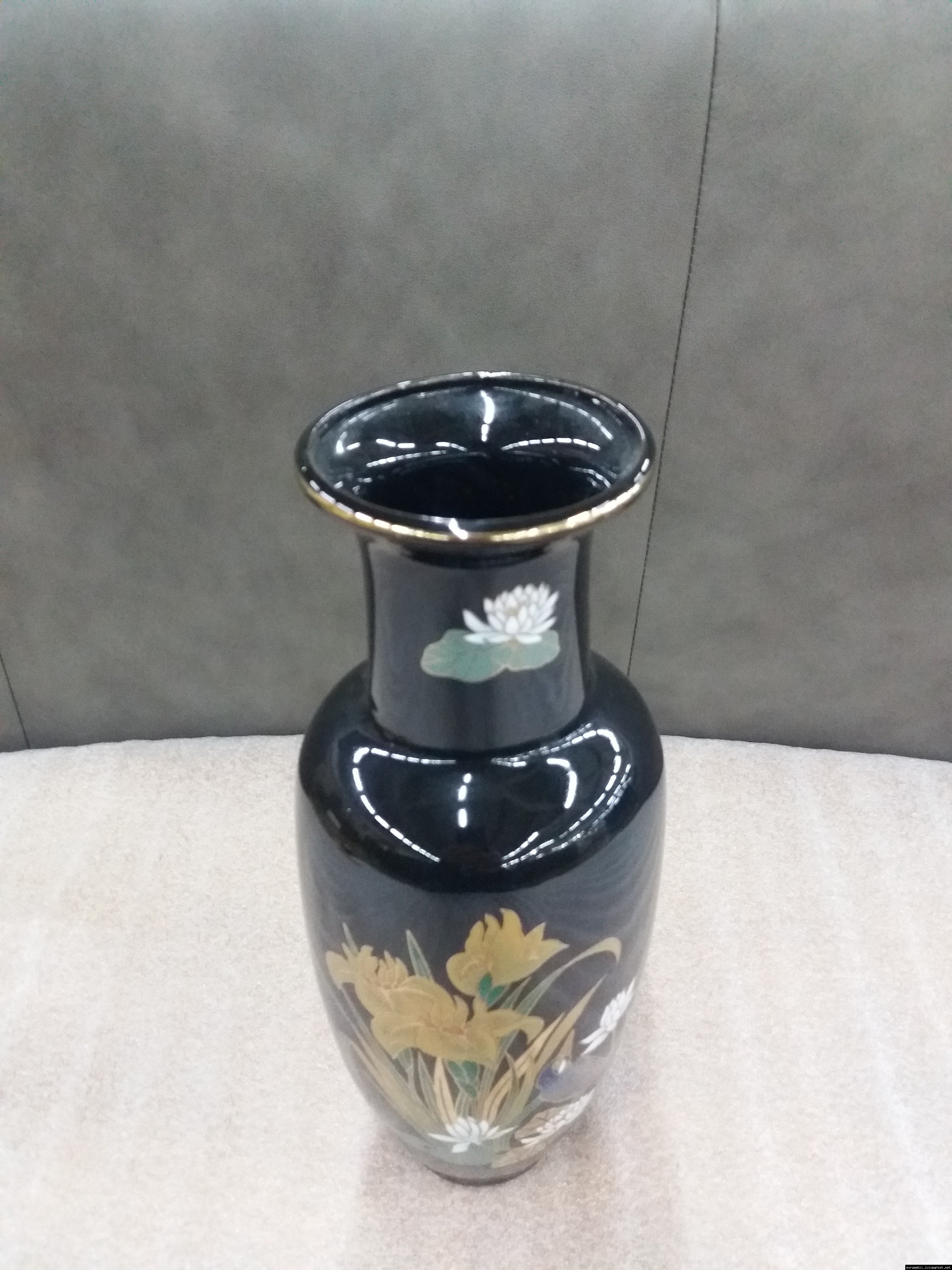 Розкішна чорна порцелянова ваза з яскравим, насиченим квітковим принтом. Японія. Інтер'єрна ваза - це посудина, де зберігається «душа» Вашого будинку. Вона оживляє інтер'єр і надає затишок і комфорт. Вважається, що вази, які мають широку форму біля основи і звужуються догори, створюють своєрідний резервуар для зберігання позитивної енергії. Ваза красива і яскрава, в хорошому стані, без сколів чи тріщин, привезена з Бельгії.