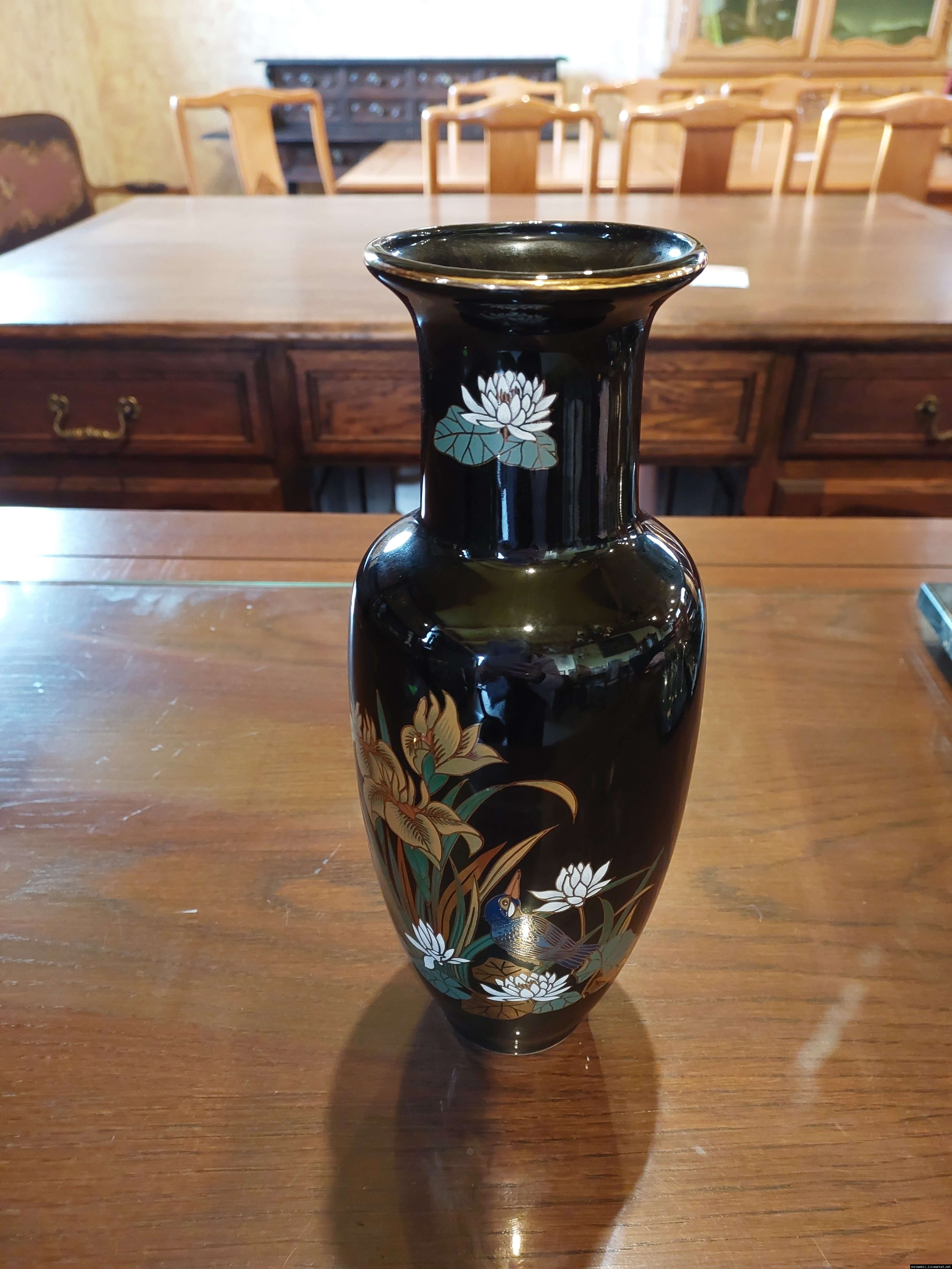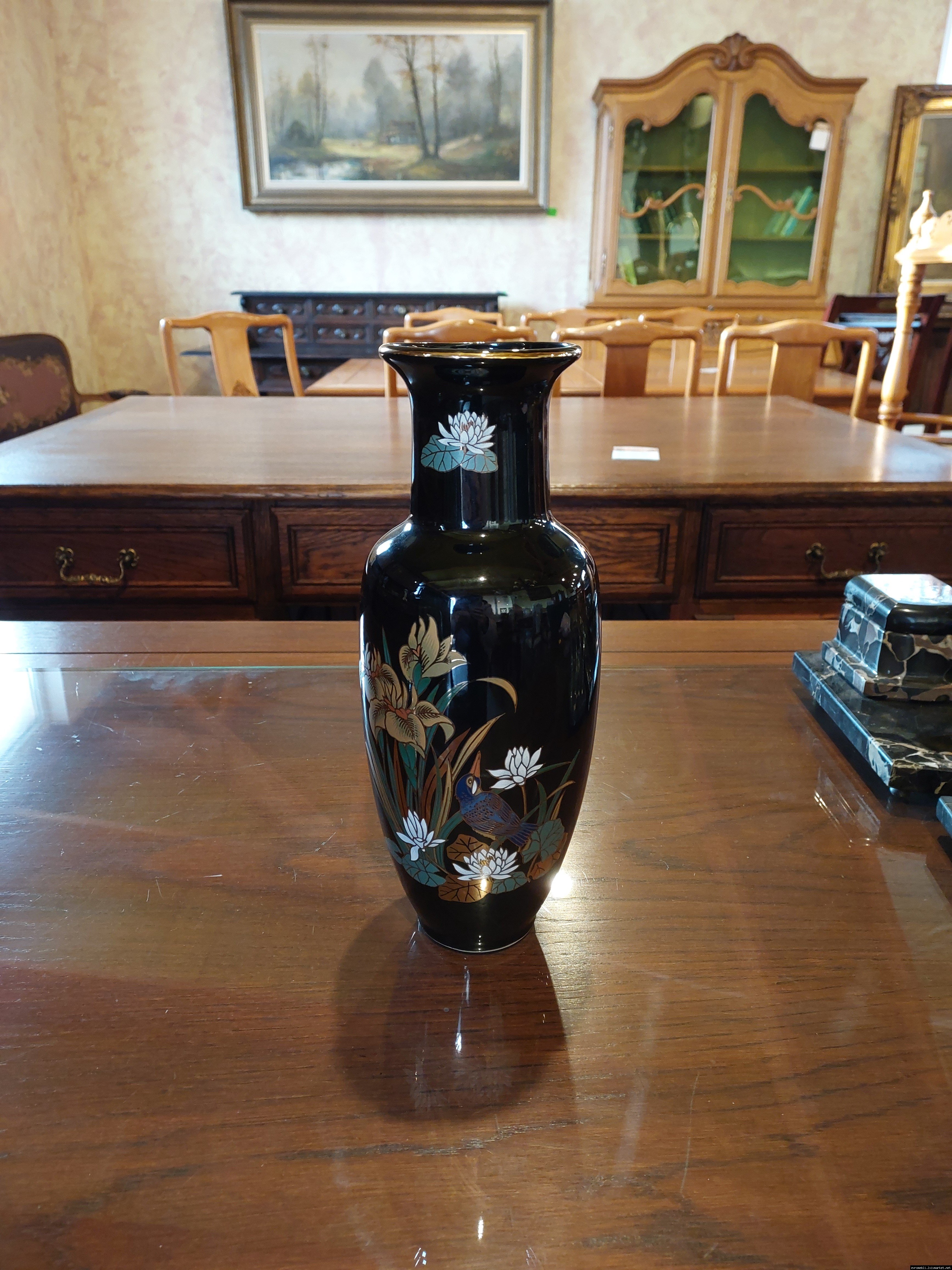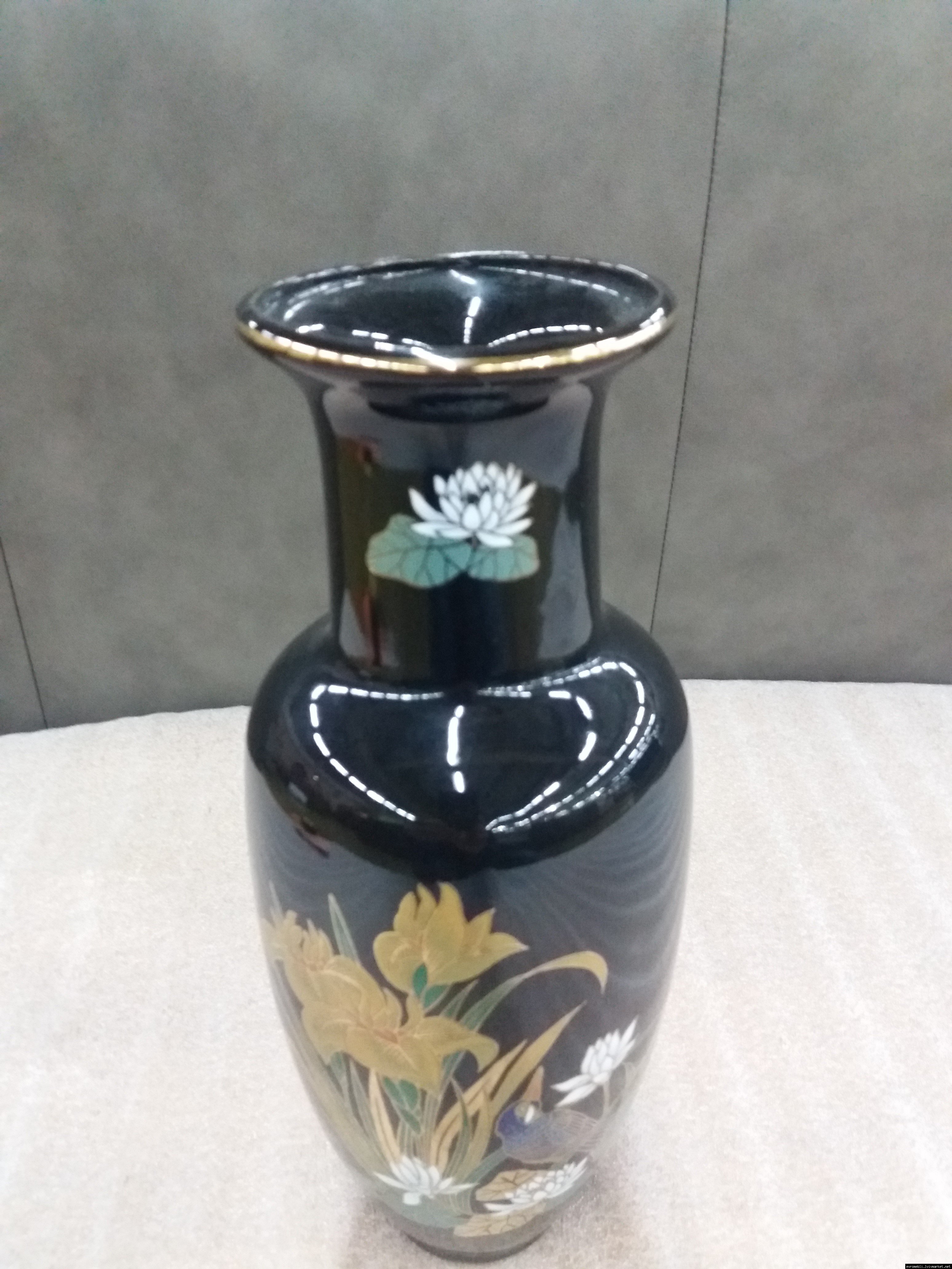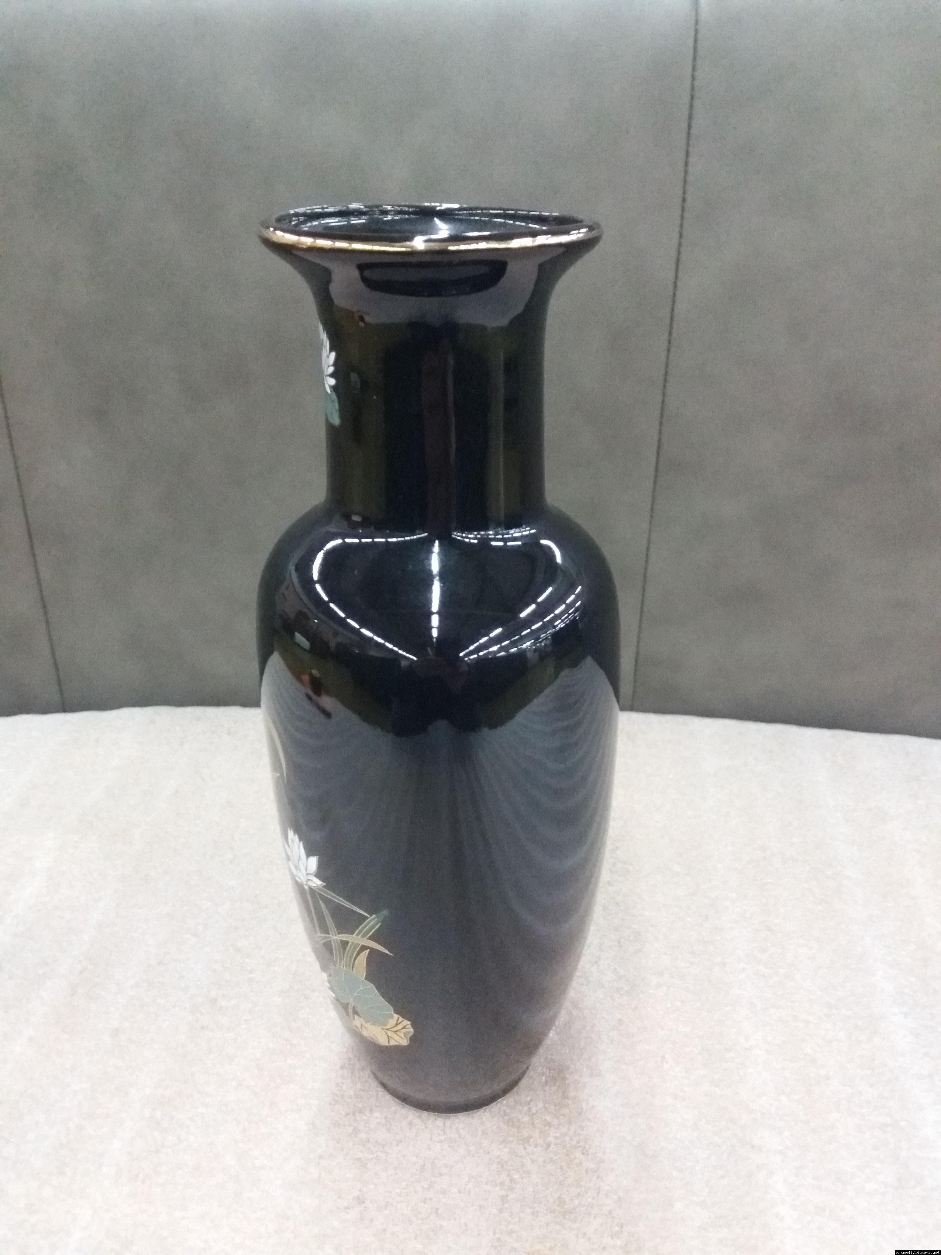 Розкішна чорна порцелянова ваза з яскравим, насиченим квітковим принтом. Японія. Інтер'єрна ваза - це посудина, де зберігається «душа» Вашого будинку. Вона оживляє інтер'єр і надає затишок і комфорт. Вважається, що вази, які мають широку форму біля основи і звужуються догори, створюють своєрідний резервуар для зберігання позитивної енергії. Ваза красива і яскрава, в хорошому стані, без сколів чи тріщин, привезена з Бельгії.