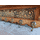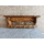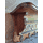 Настінний деревяний вішак. Вішак виготовлений з натурального дерева, темно-золотистий дуб, масив, декорований елементами різьби, має поличку та шість металевих гачків, гачки виготовлені з латуні темного кольору. Вішак декорований обємною чеканкою із сюжетним малюнком. Вішак в хорошому стані, привезений з Бельгії.