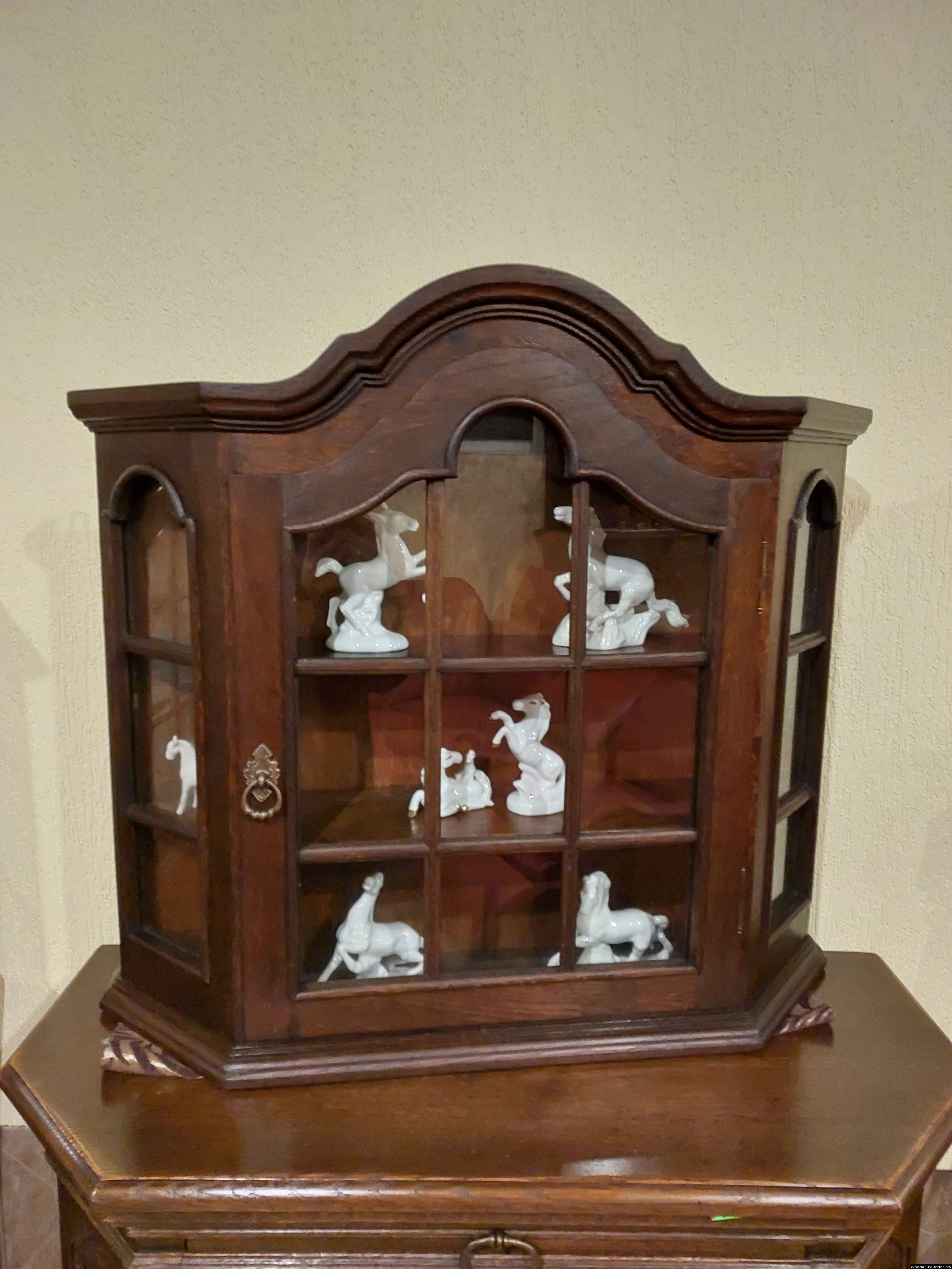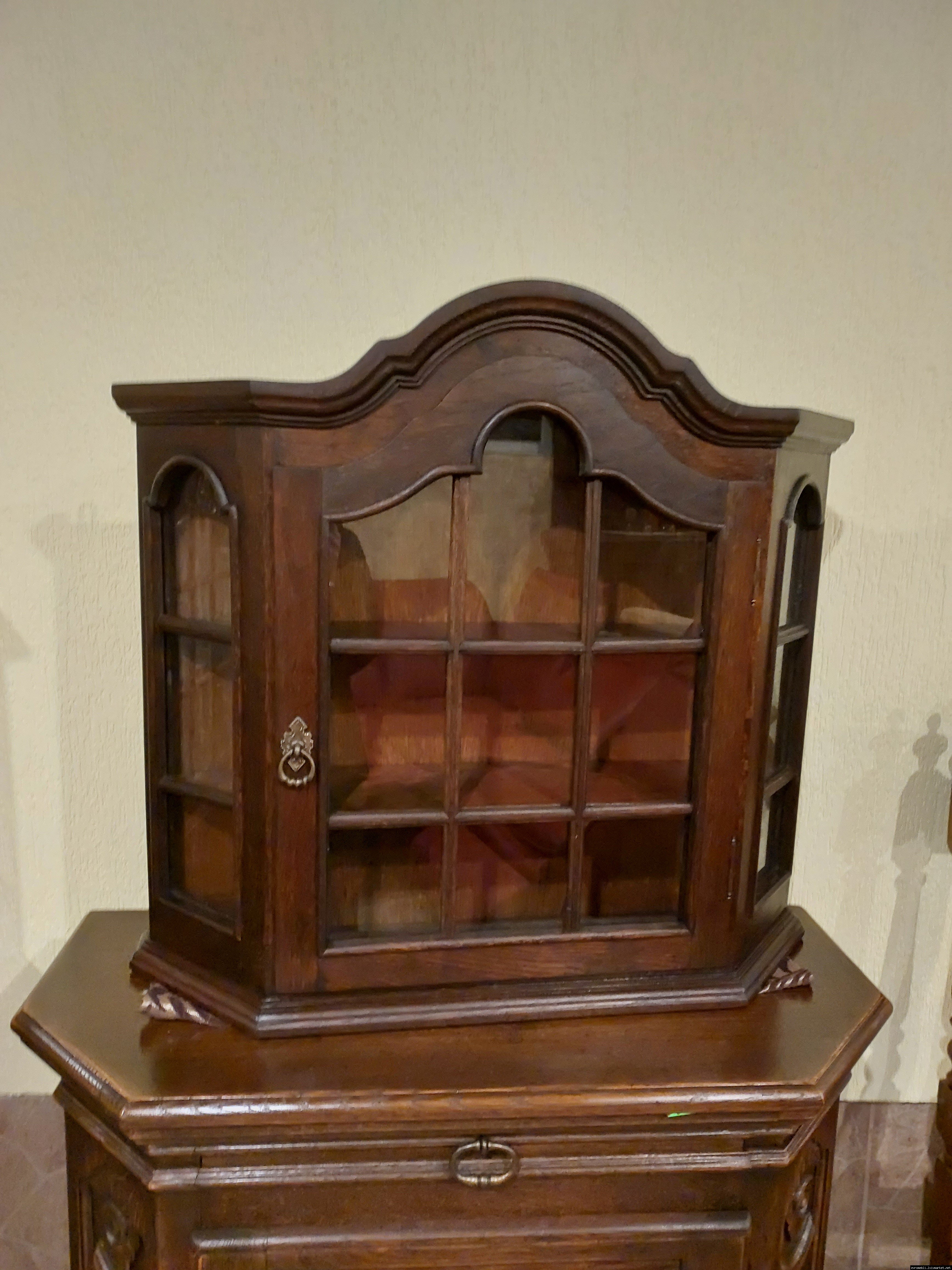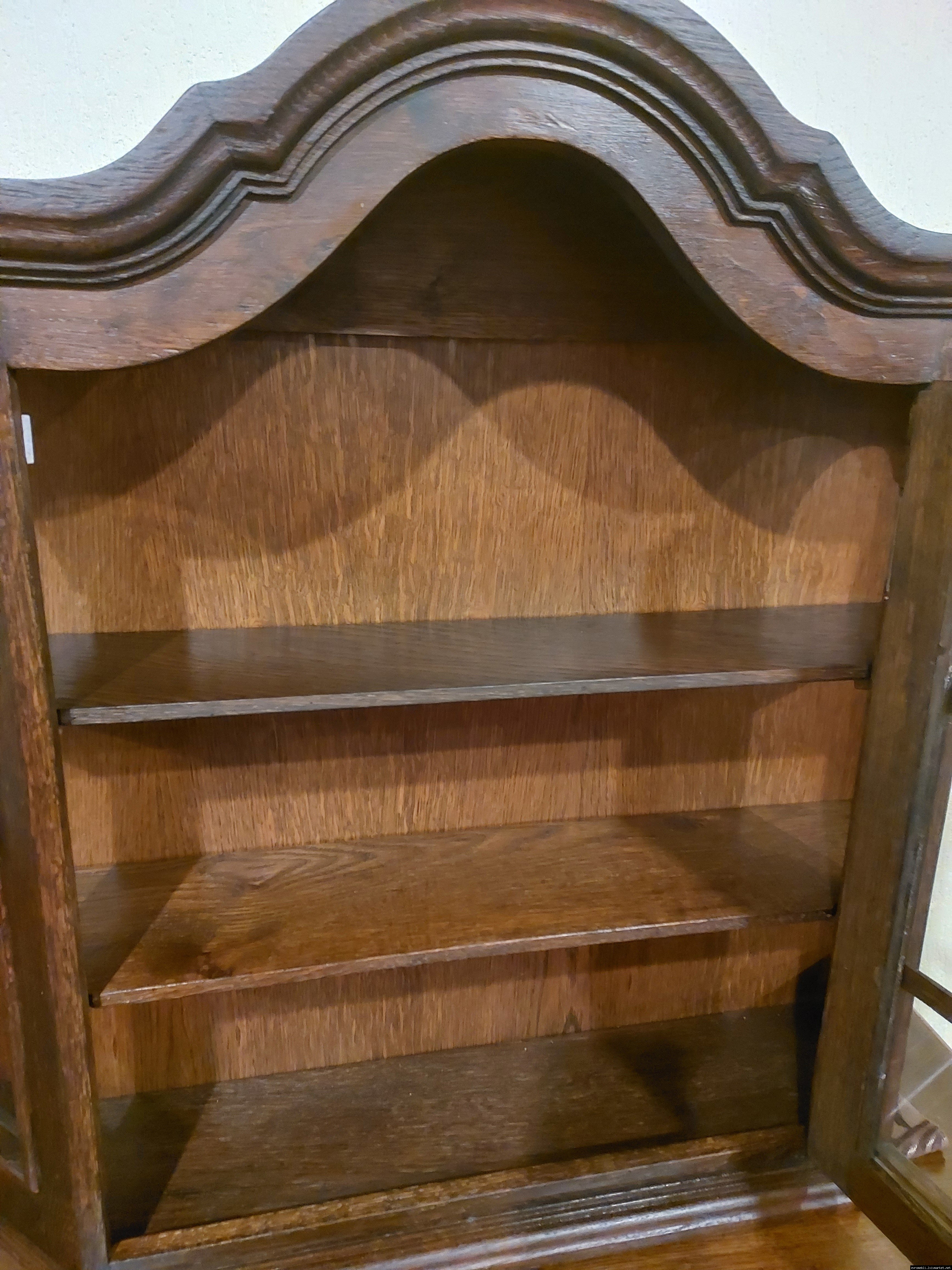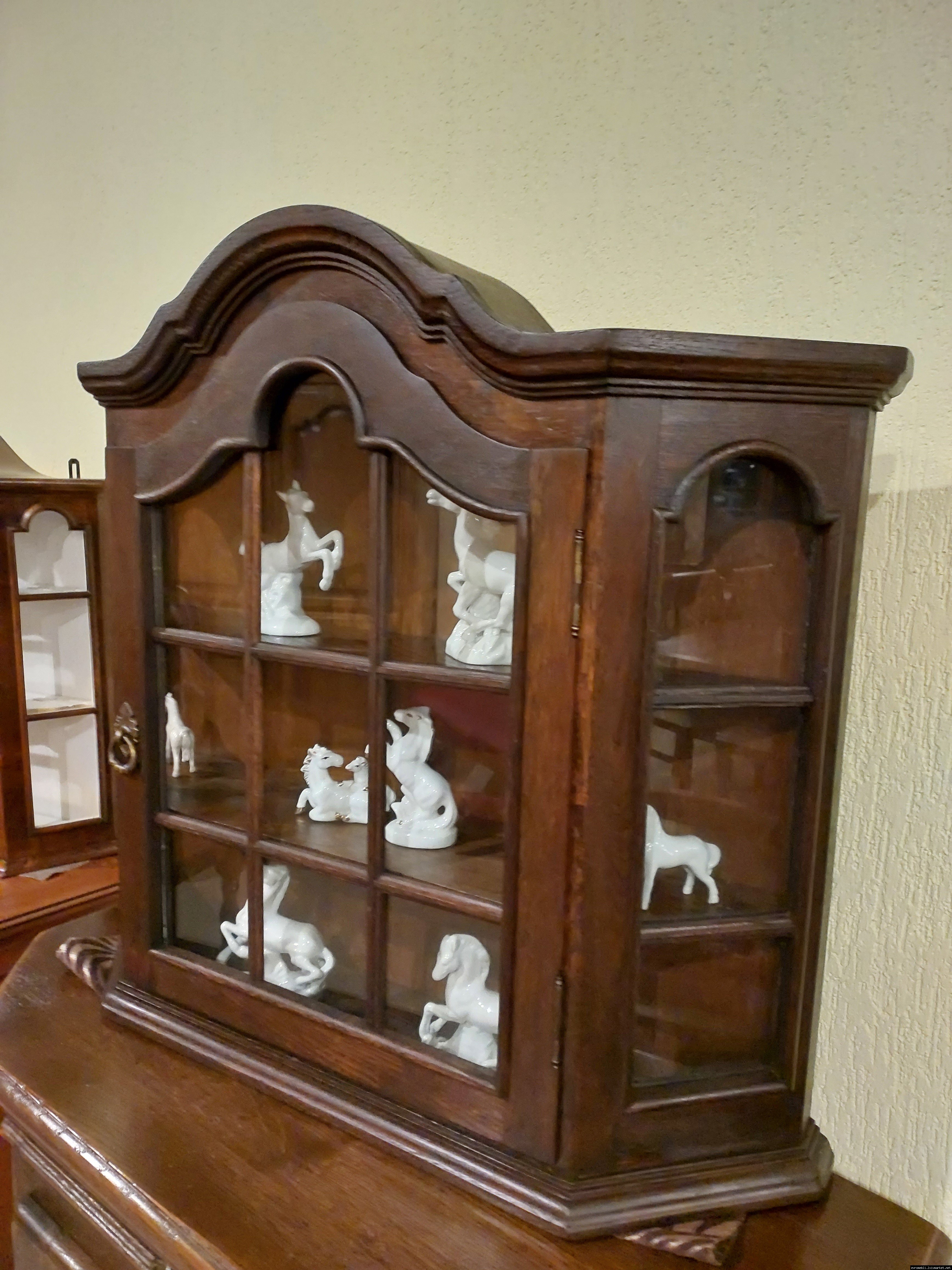 Красива, маленька, деревяна, підвісна вітринка. Вітрина виготовлена з масиву натурального дерева, темний дуб, має одну дверку зі ском. Вітрина меленька та компактна, в хорошому стані, привезена з Бельгії.
