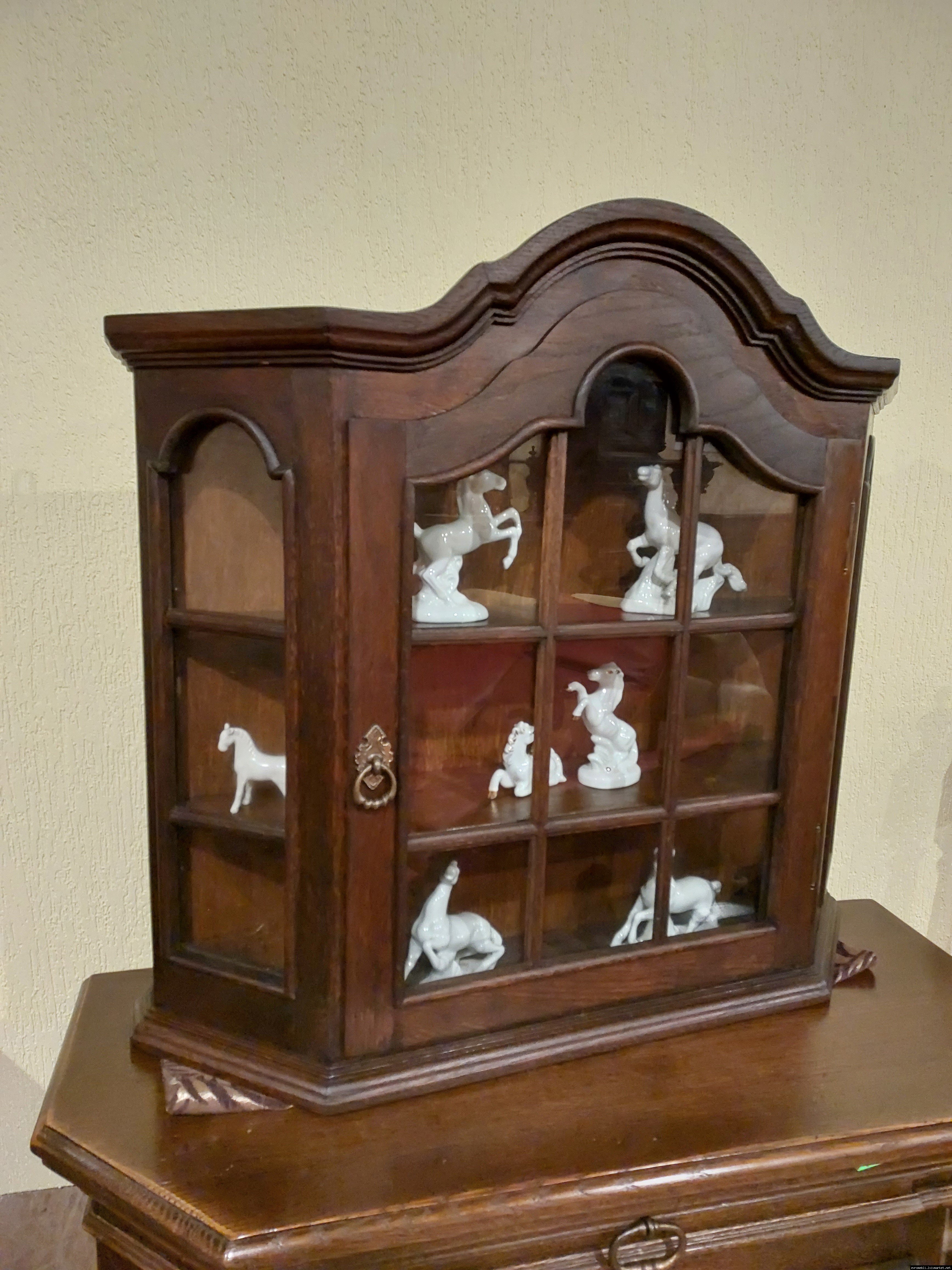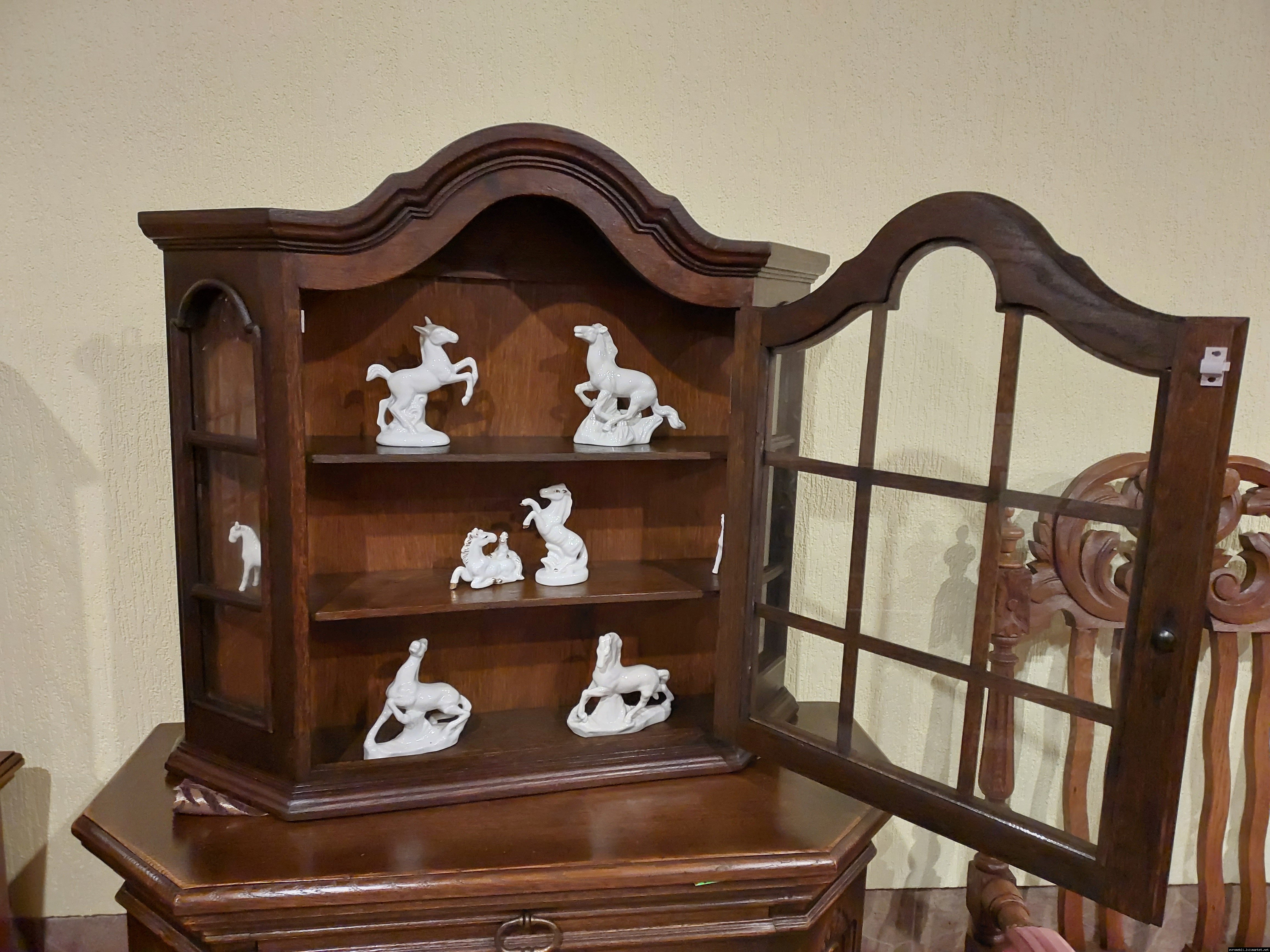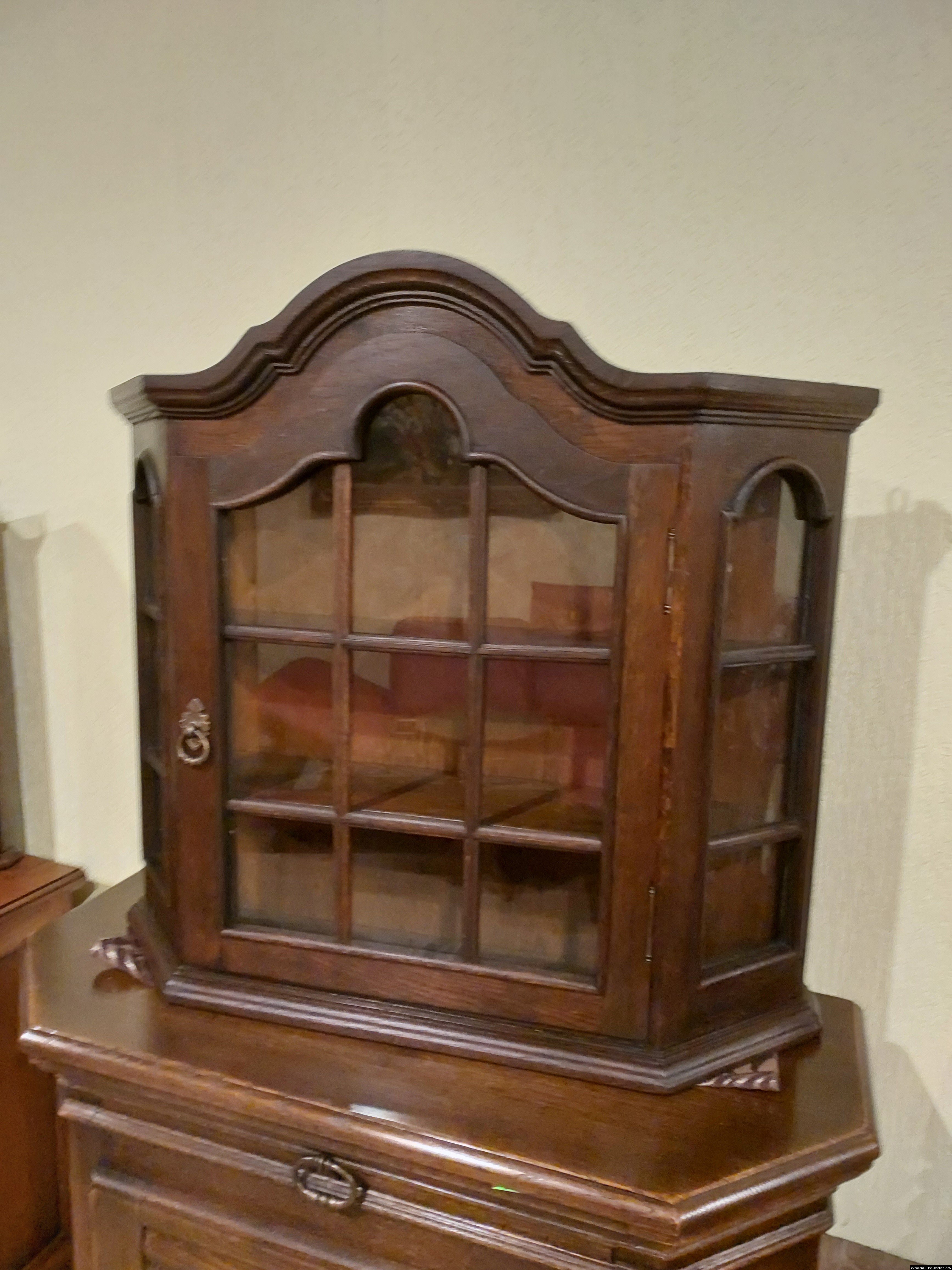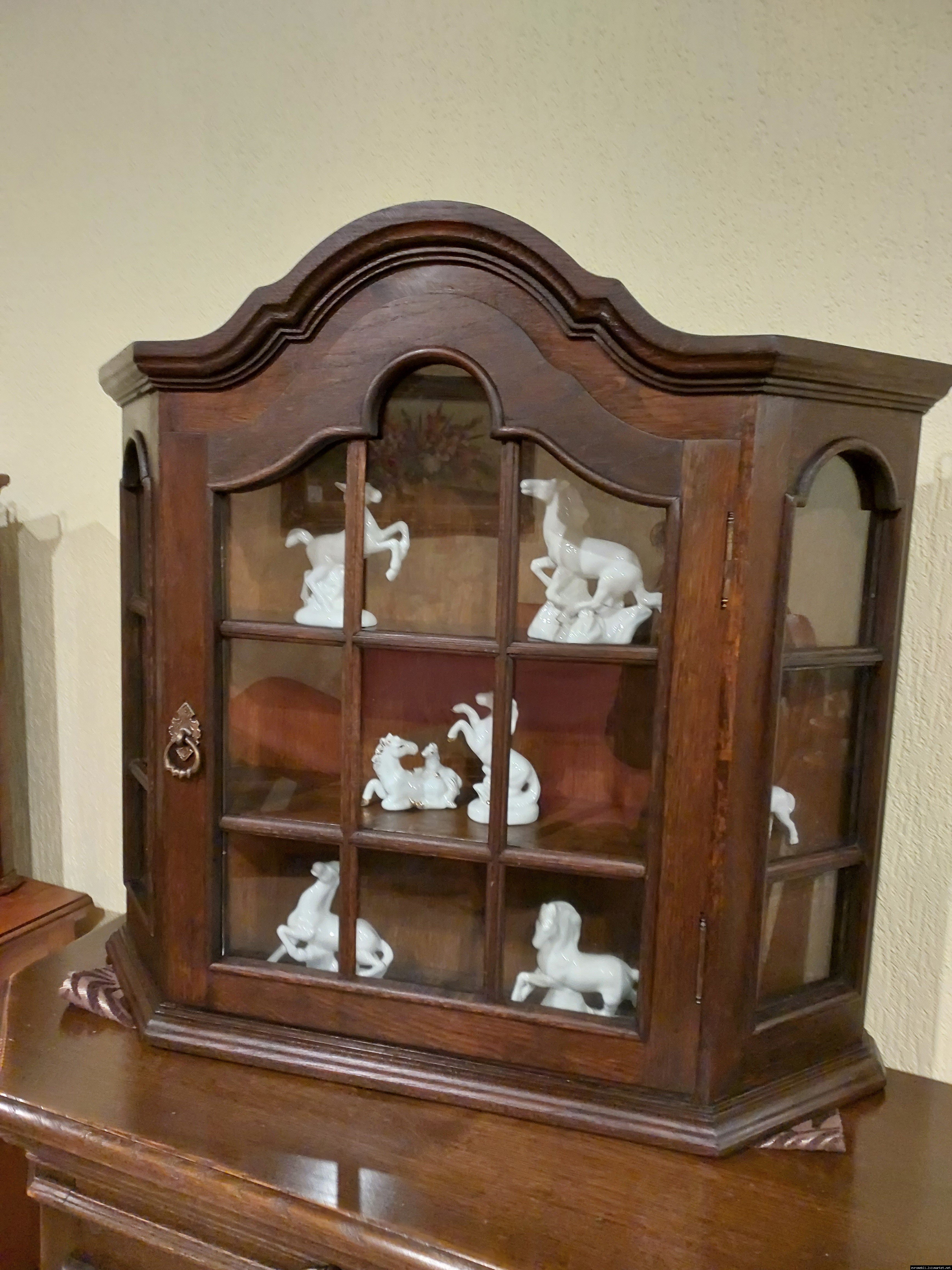 Красива, маленька, деревяна, підвісна вітринка. Вітрина виготовлена з масиву натурального дерева, темний дуб, має одну дверку зі ском. Вітрина меленька та компактна, в хорошому стані, привезена з Бельгії.