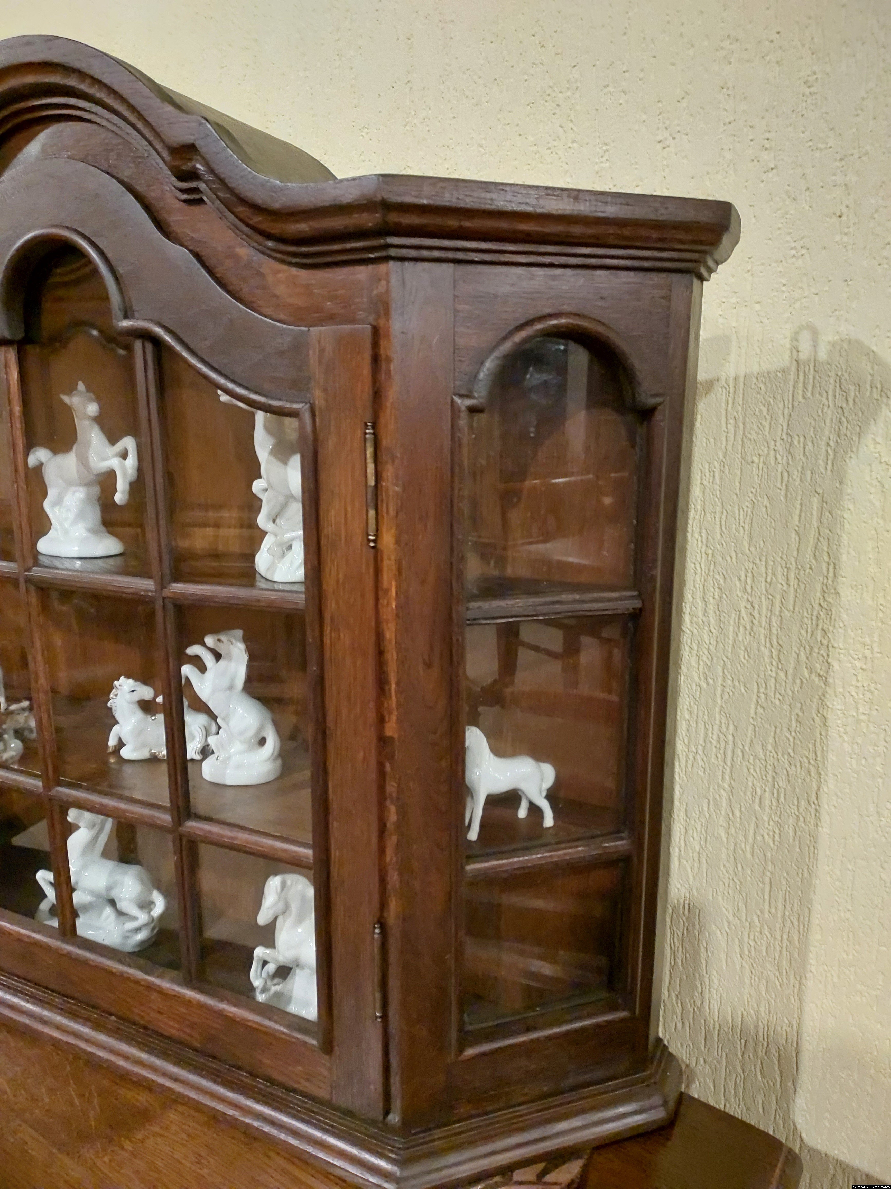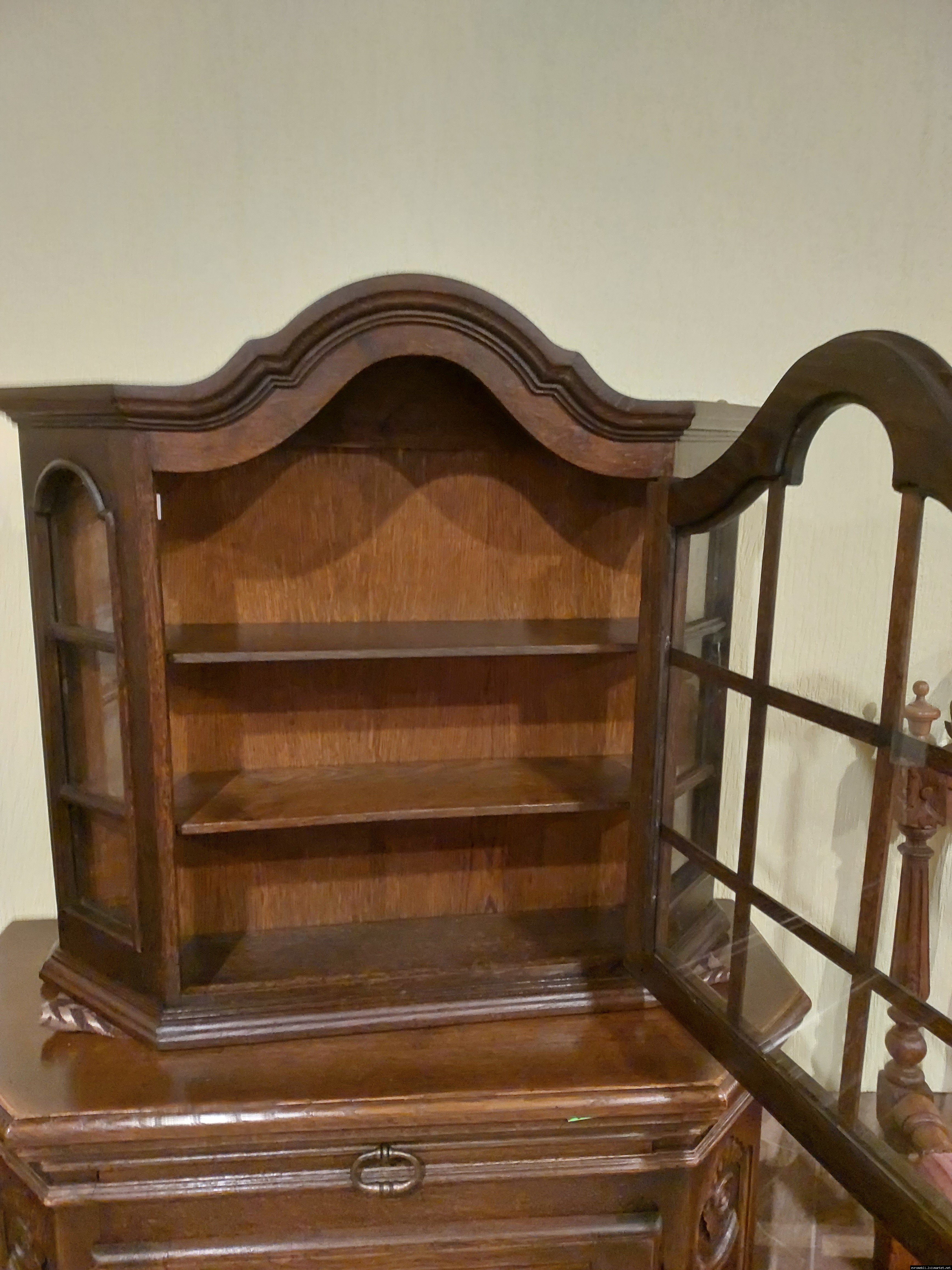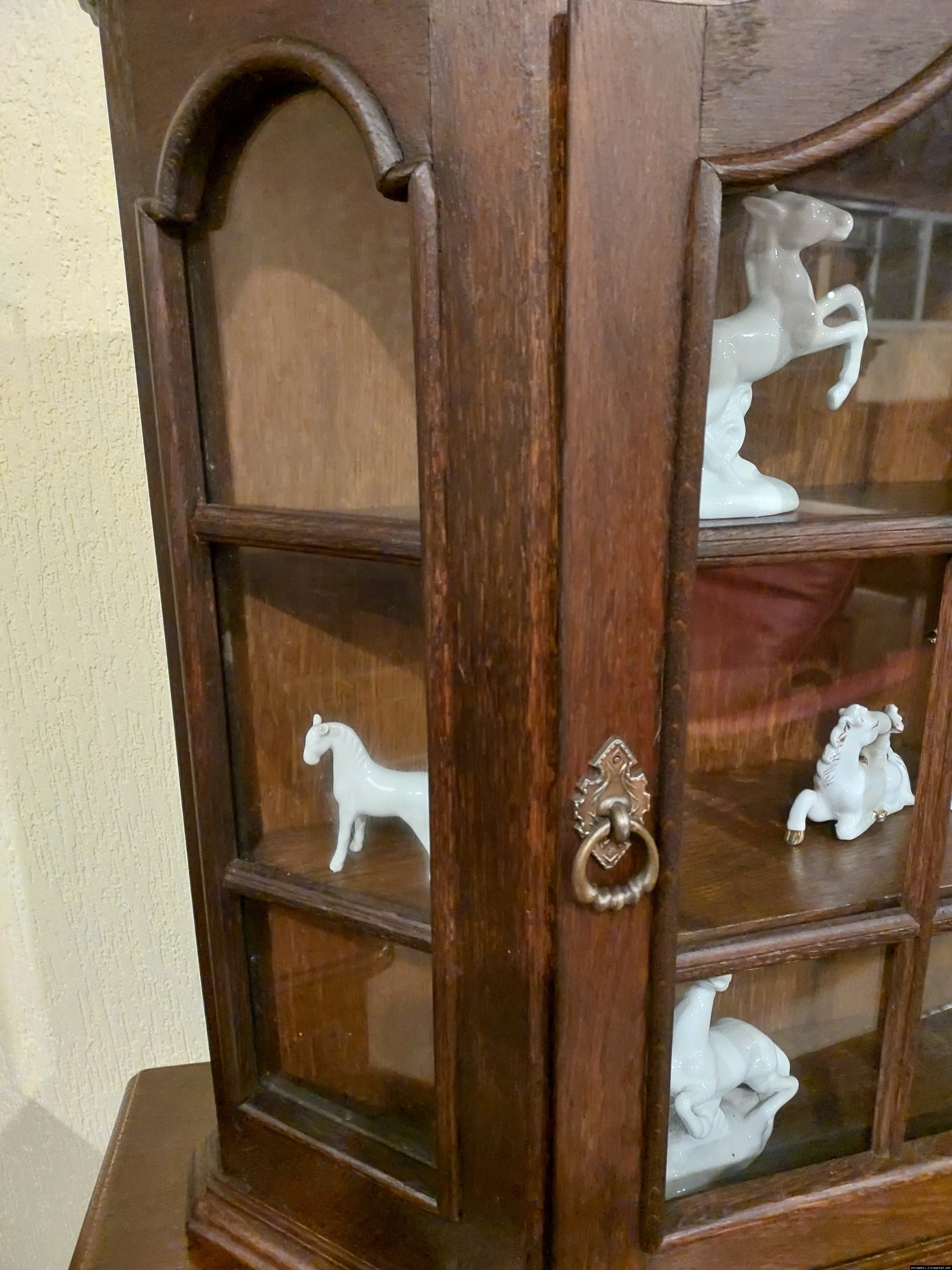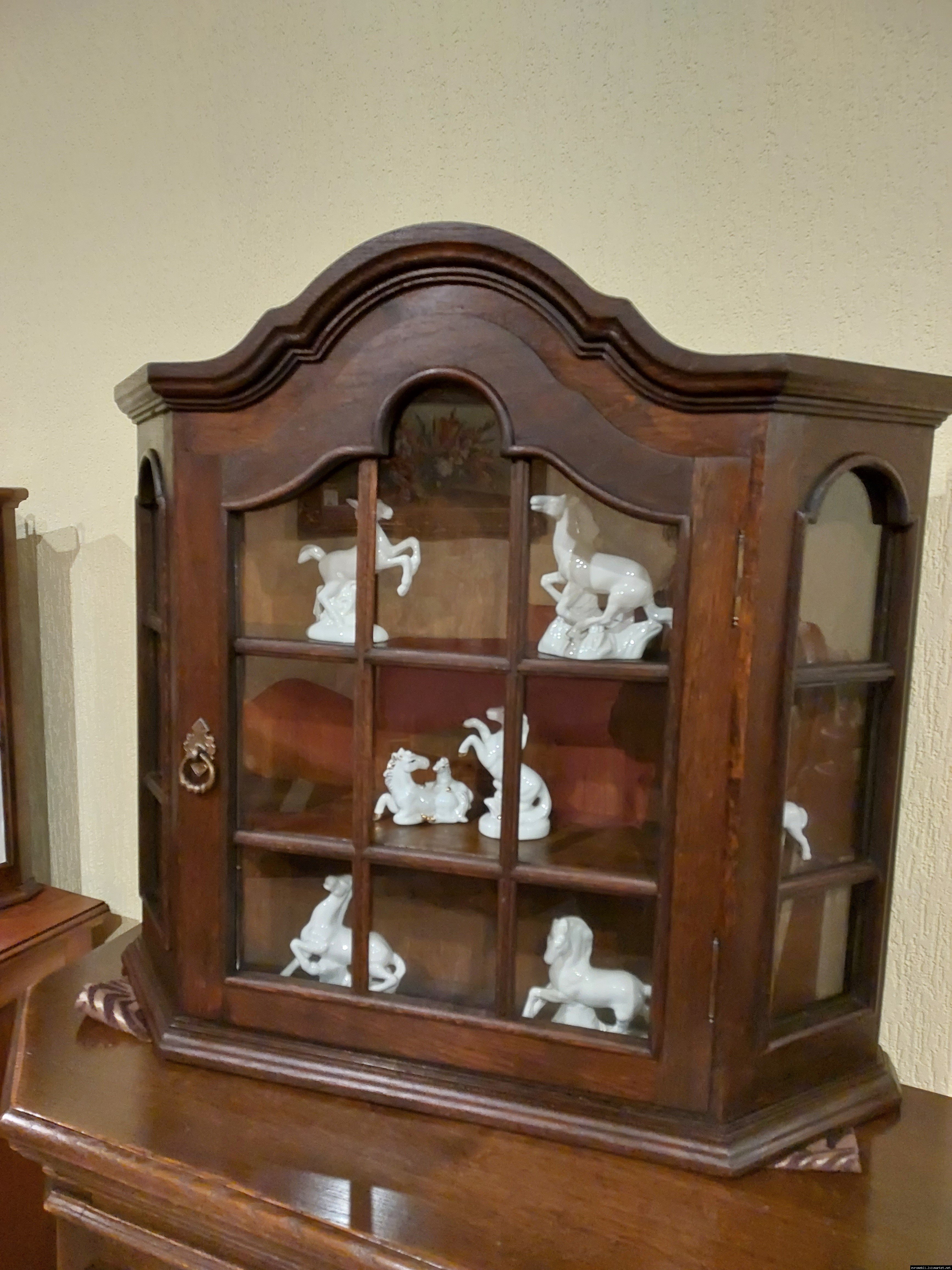 Красива, маленька, деревяна, підвісна вітринка. Вітрина виготовлена з масиву натурального дерева, темний дуб, має одну дверку зі ском. Вітрина меленька та компактна, в хорошому стані, привезена з Бельгії.