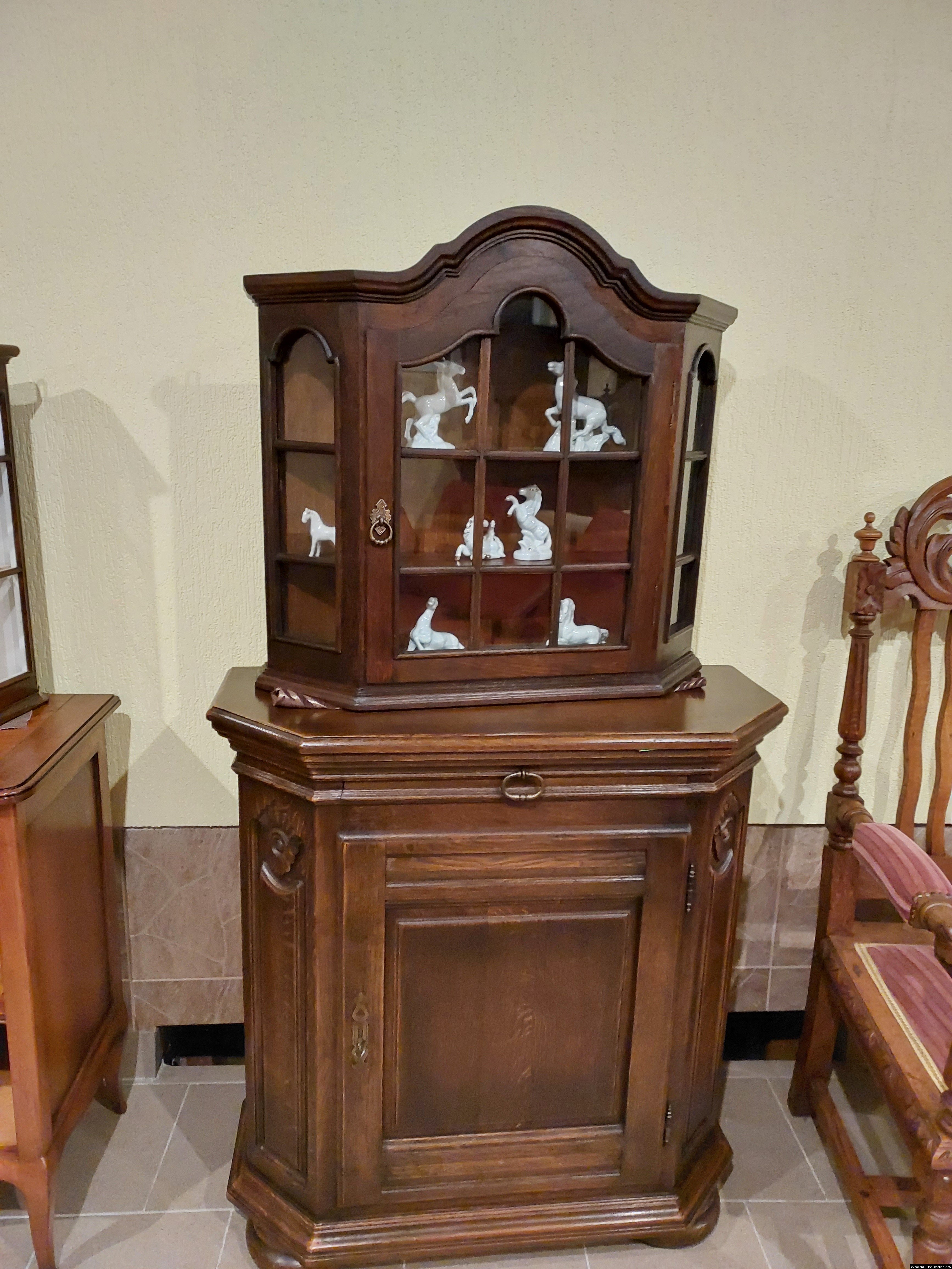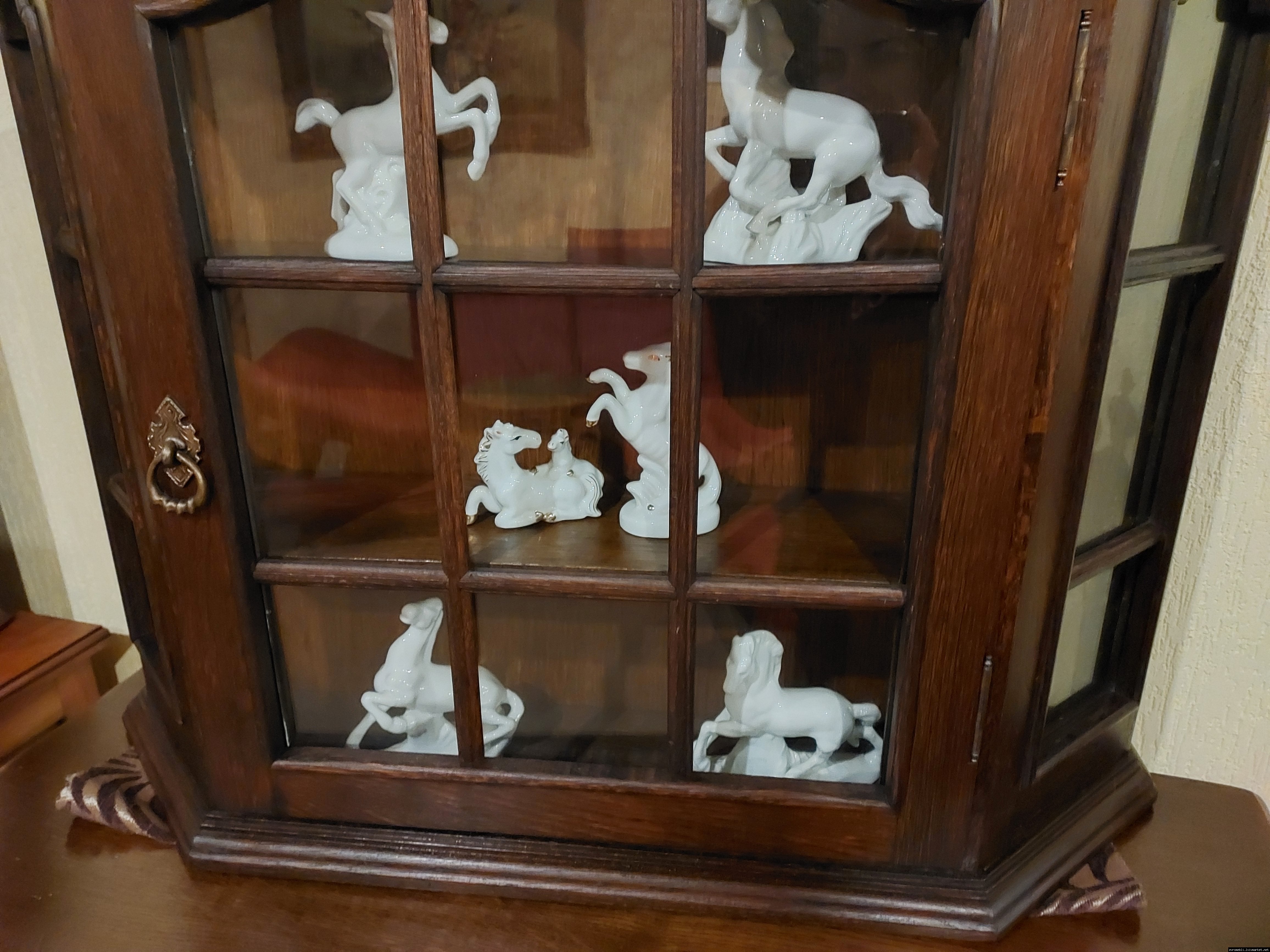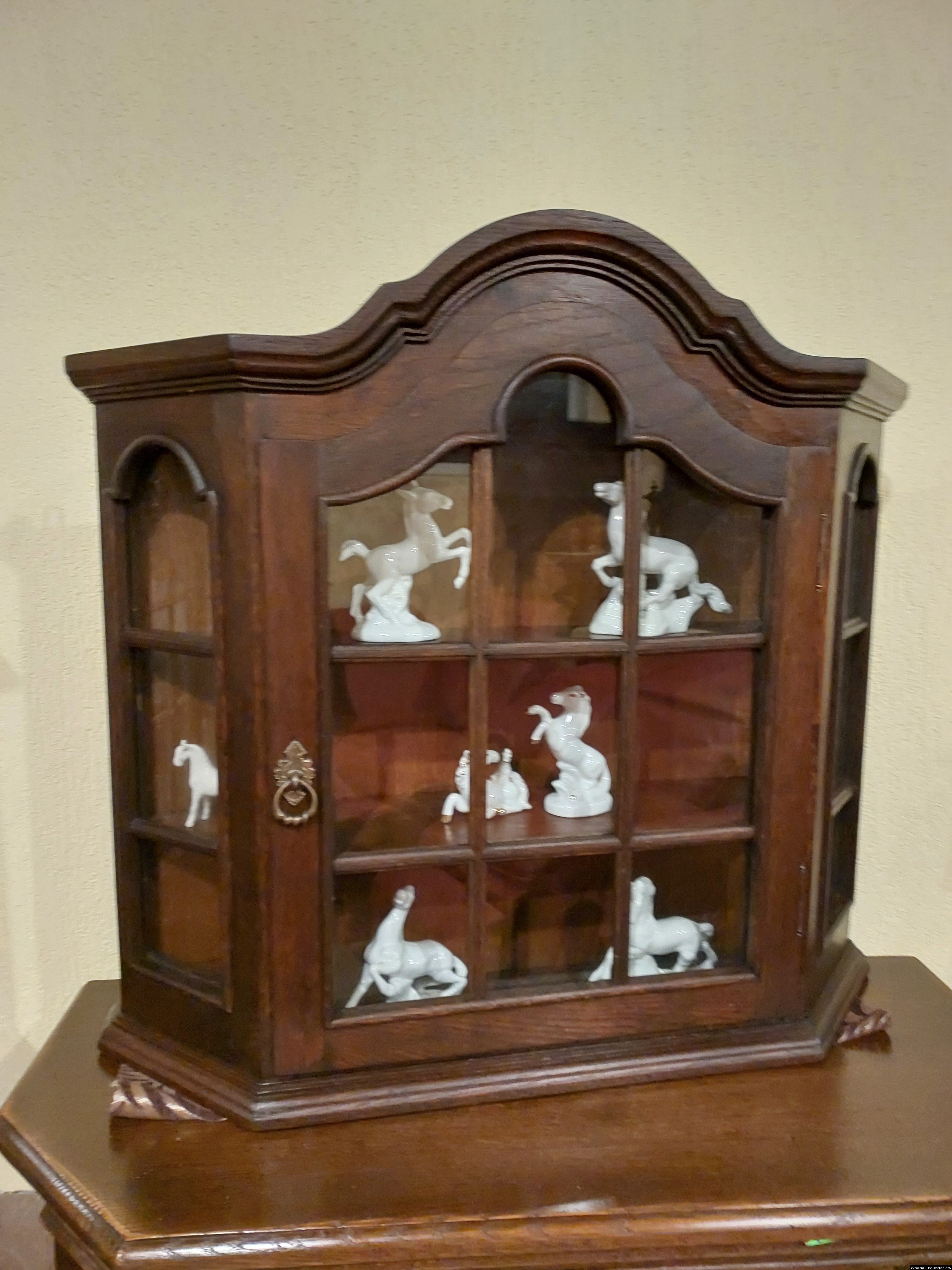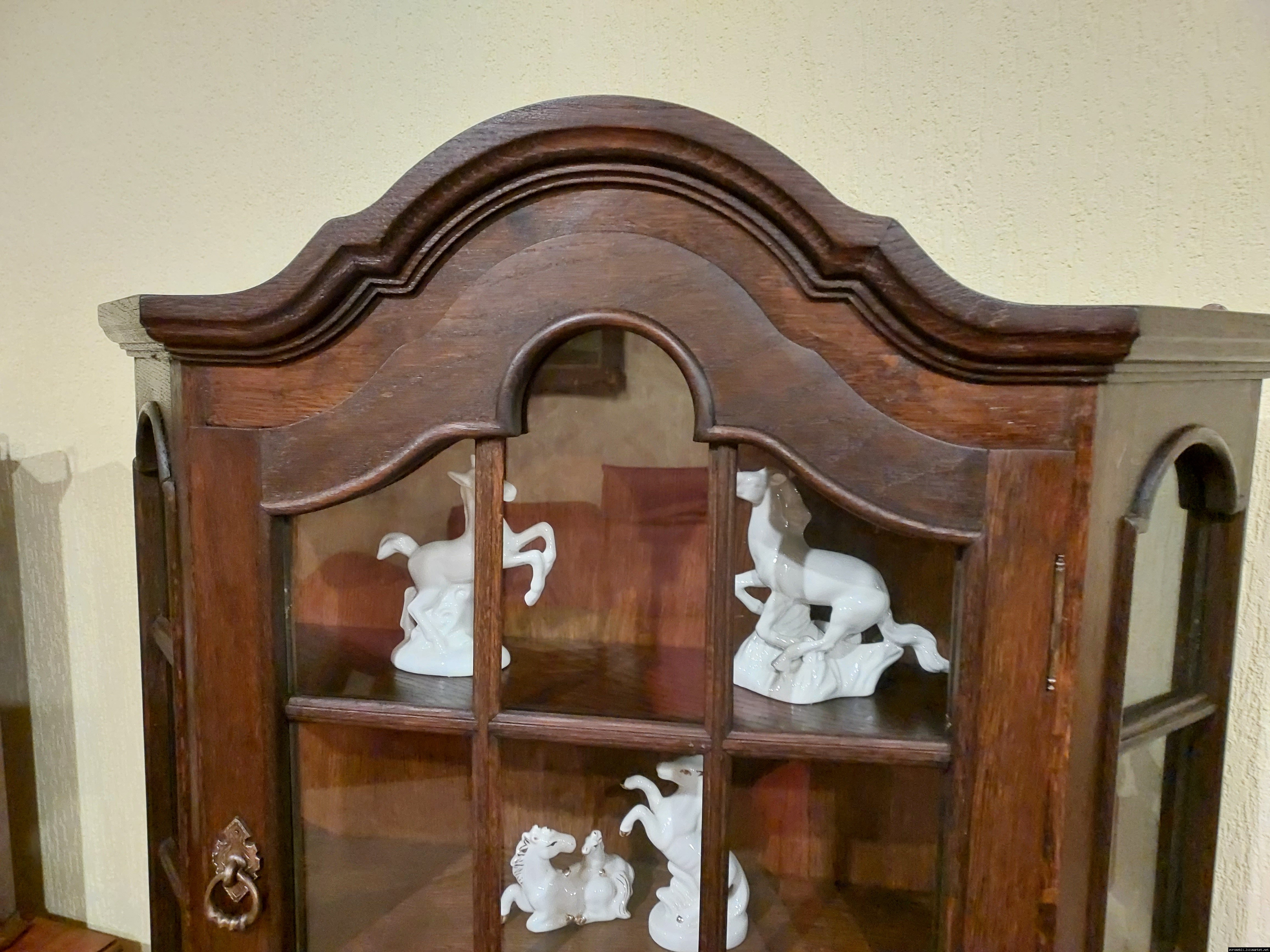 Красива, маленька, деревяна, підвісна вітринка. Вітрина виготовлена з масиву натурального дерева, темний дуб, має одну дверку зі ском. Вітрина меленька та компактна, в хорошому стані, привезена з Бельгії.