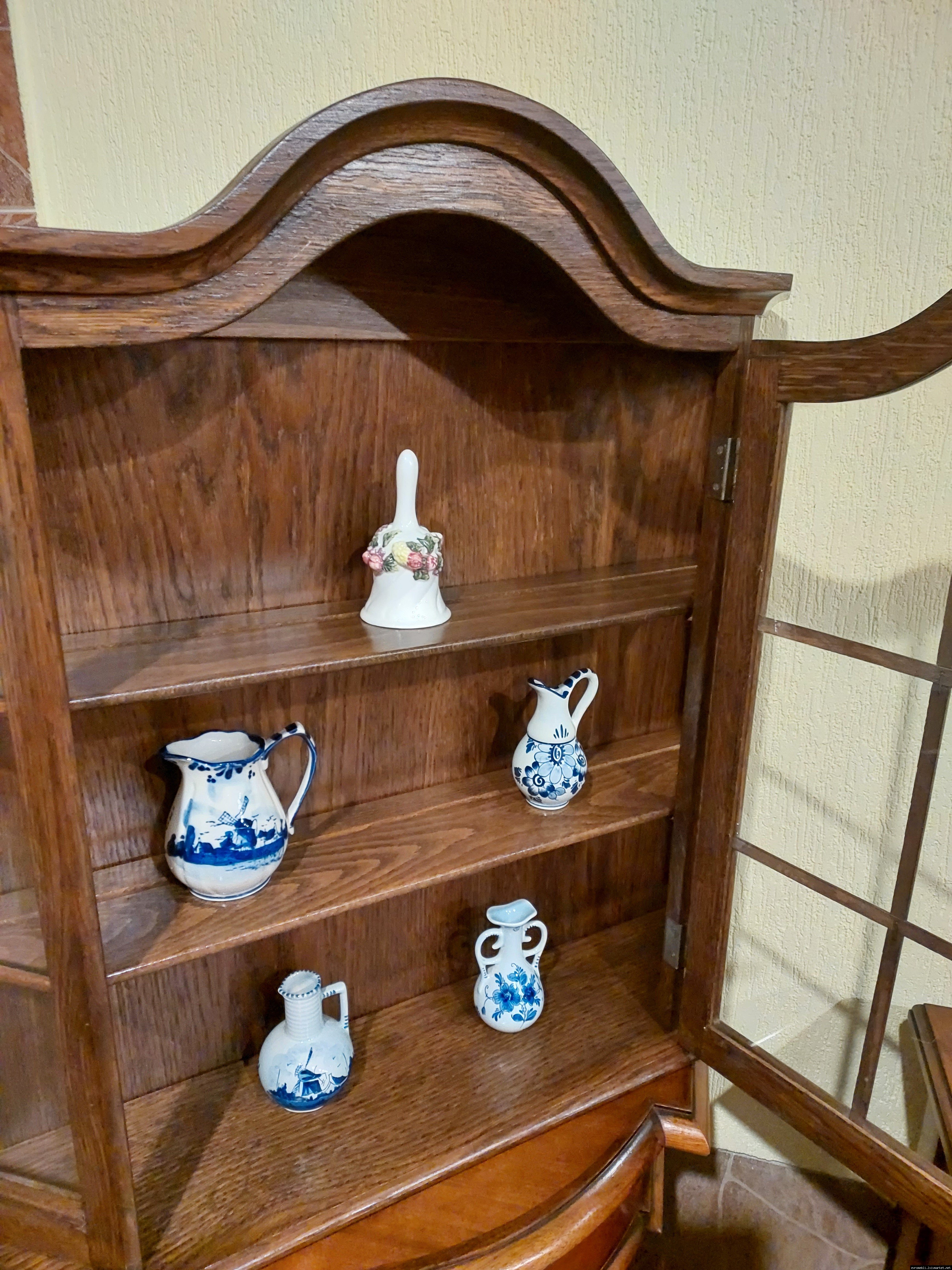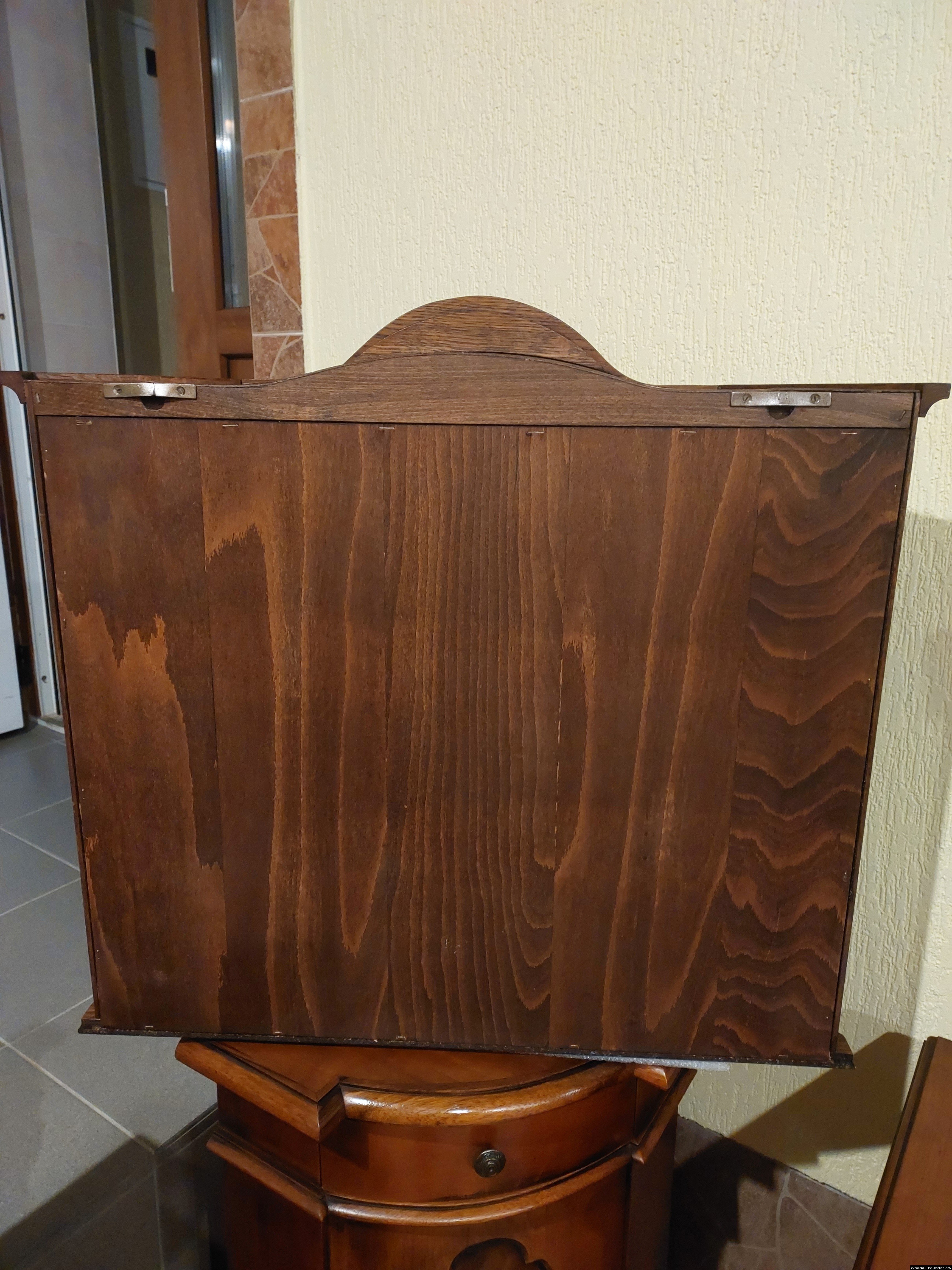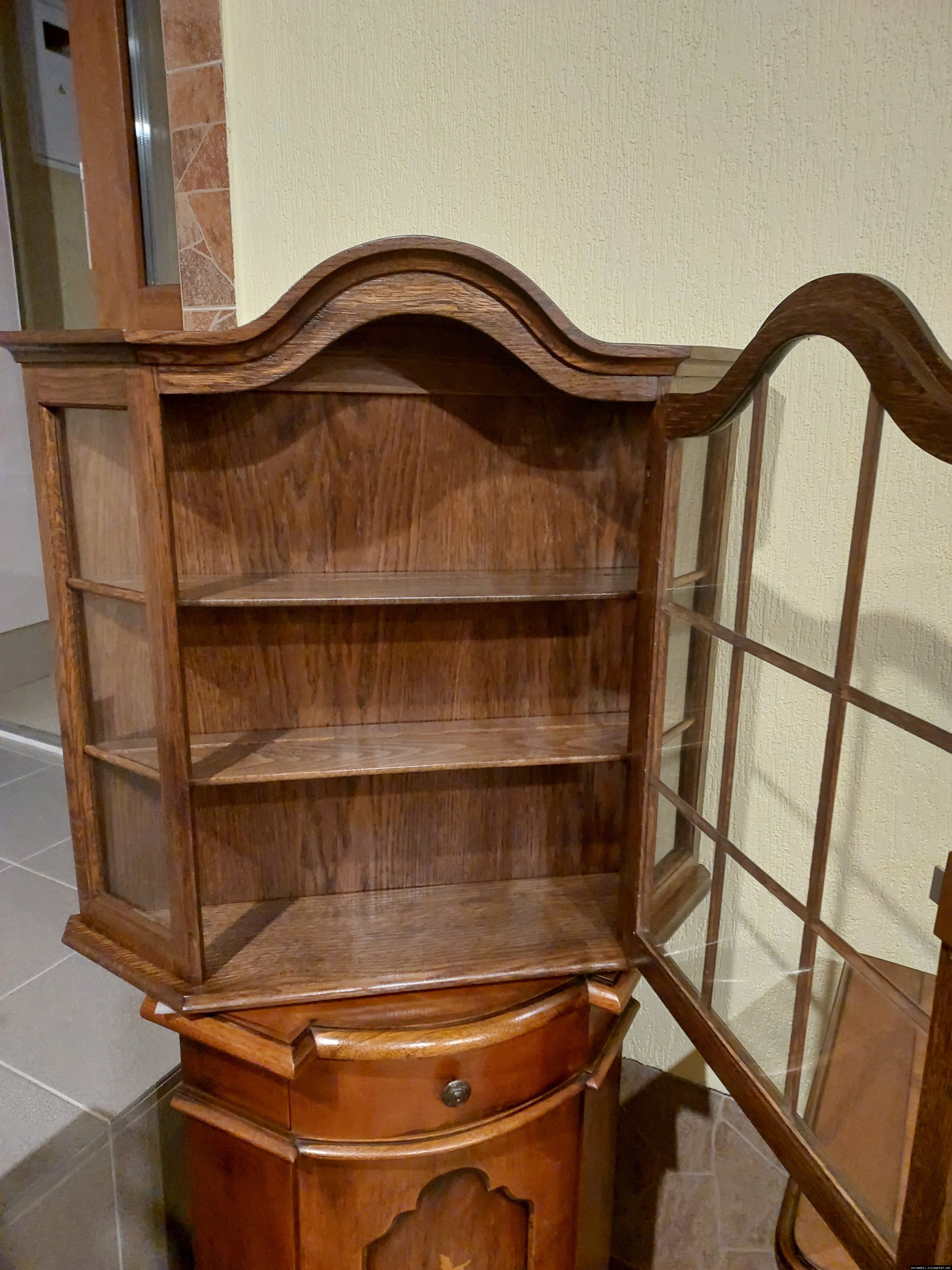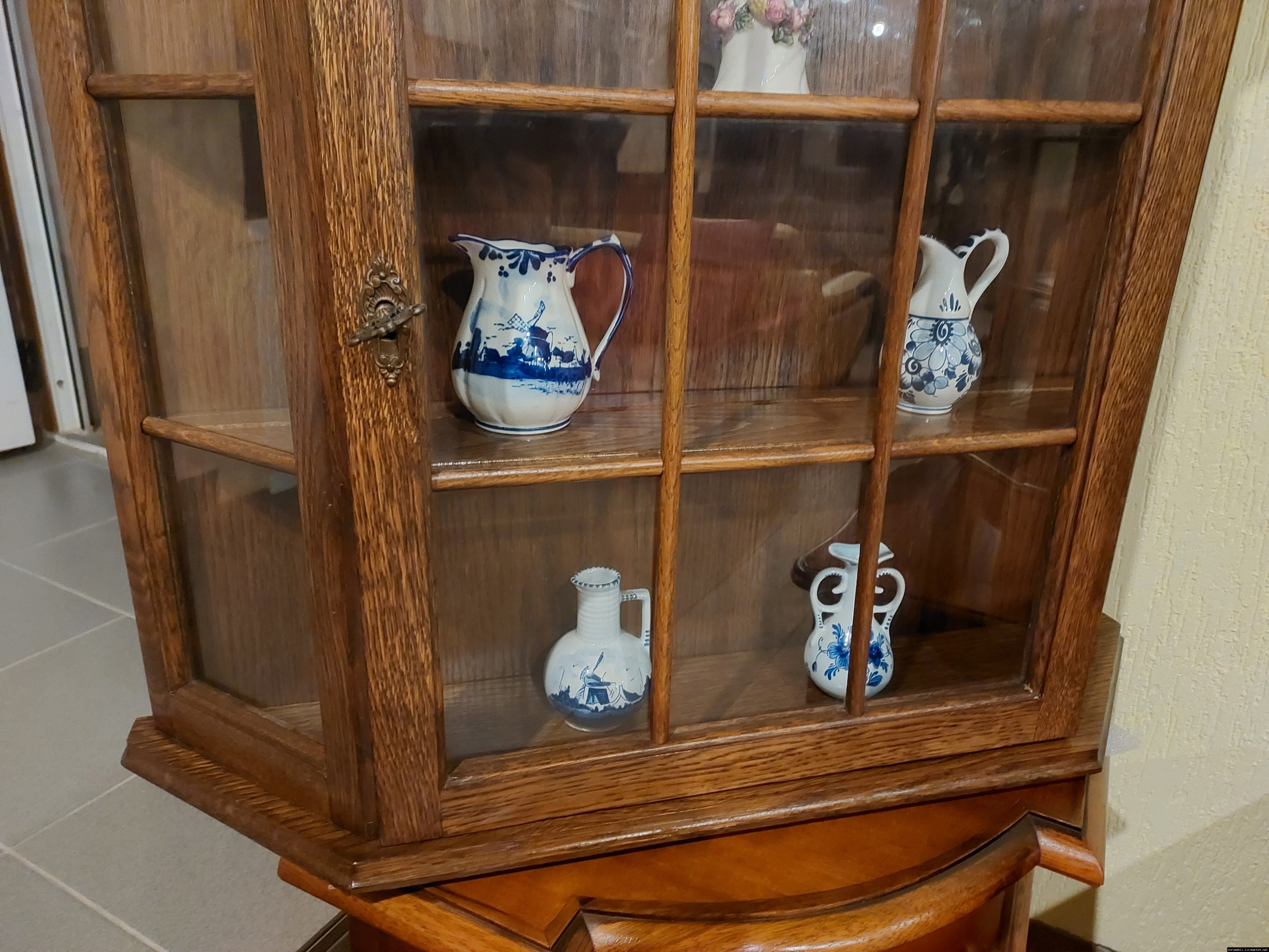 Красива, маленька, деревяна, підвісна вітринка. Вітрина виготовлена з масиву натурального дерева, темно- золотистий дуб, має одну дверку зі ском. Вітрина меленька та компактна, в хорошому стані, привезена з Бельгії.