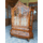 Вітрина в стилі Барокко, на ніжках у вигляді пташиних лап, що тримають кулю. Вітрина виготовлена з масиву натурального дерева, декорована інкрустацією з кореня горіха та елементами різьби ручної роботи, має дві дверки зі склом та три шухляди, дверки та шухляди зачиняються на ключ, всередині є деревяні полиці. Вітрина велика, масивна, вмістима, в хорошому стані, привезена з Бельгії.